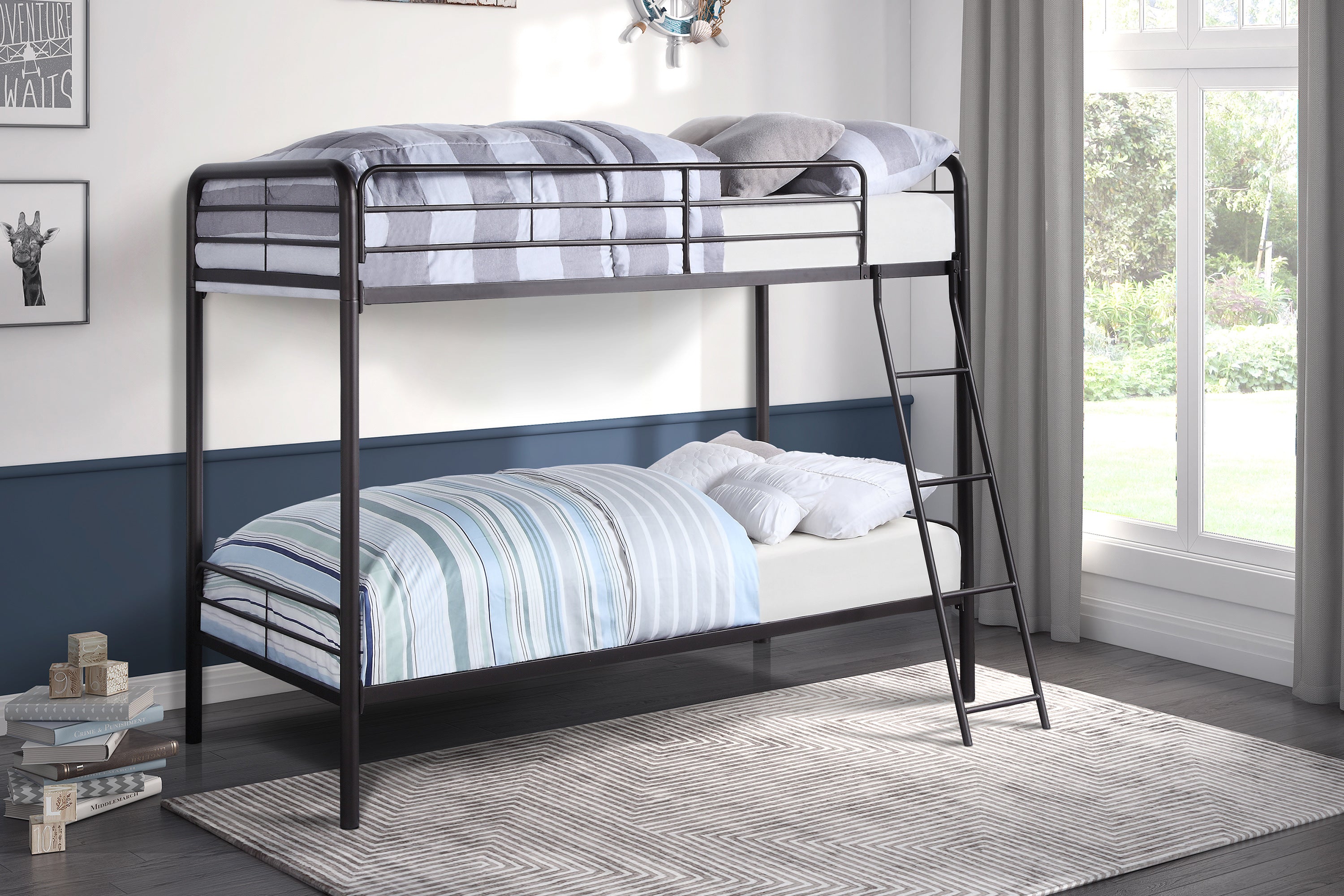 Bunkbeds allow for the maximization of sleep space within your child’s bedroom, creating efficient flow and plenty of room for play, and the Lunar Collection will be the perfect fit for your needs. The twin-over-twin bunkbed is designed to meet the needs of your available space. The tubular metal structure of the bunkbed’s frame is finished in dark bronze, creating a neutral complement to your chosen décor.