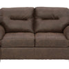 If you love the idea of a luxe look that won't break the bank, make yourself comfortable with this alluring walnut brown loveseat. Designed to look like the real thing, it's wrapped in a practical faux leather loaded with natural tonal variation and a soft hand feel. Appealing to a contemporary taste, its jumbo stitching, tufted styling and pillow top armrests are indulgently comfortable, with a streamlined look that tops off the high-end aesthetic made for everyday living. — Luna Furniture introduces Maderla Loveseat to enhance the beauty of your living spaces.