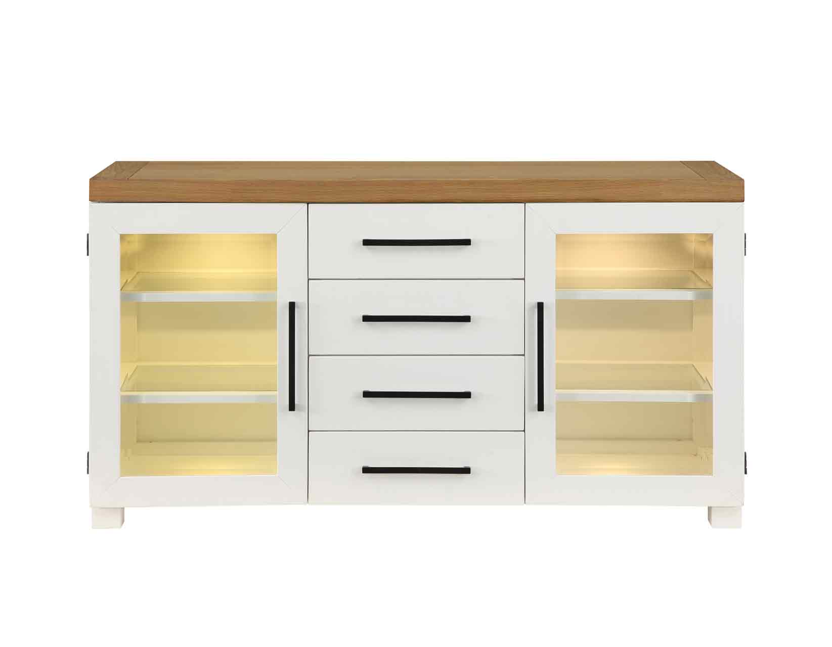 - Four adjustable glass shelves for storage and display