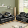 • 9724BLK-3 Double Reclining Sofa with Center Drop-Down Cup Holders 88 x 38.5 x 39.5H