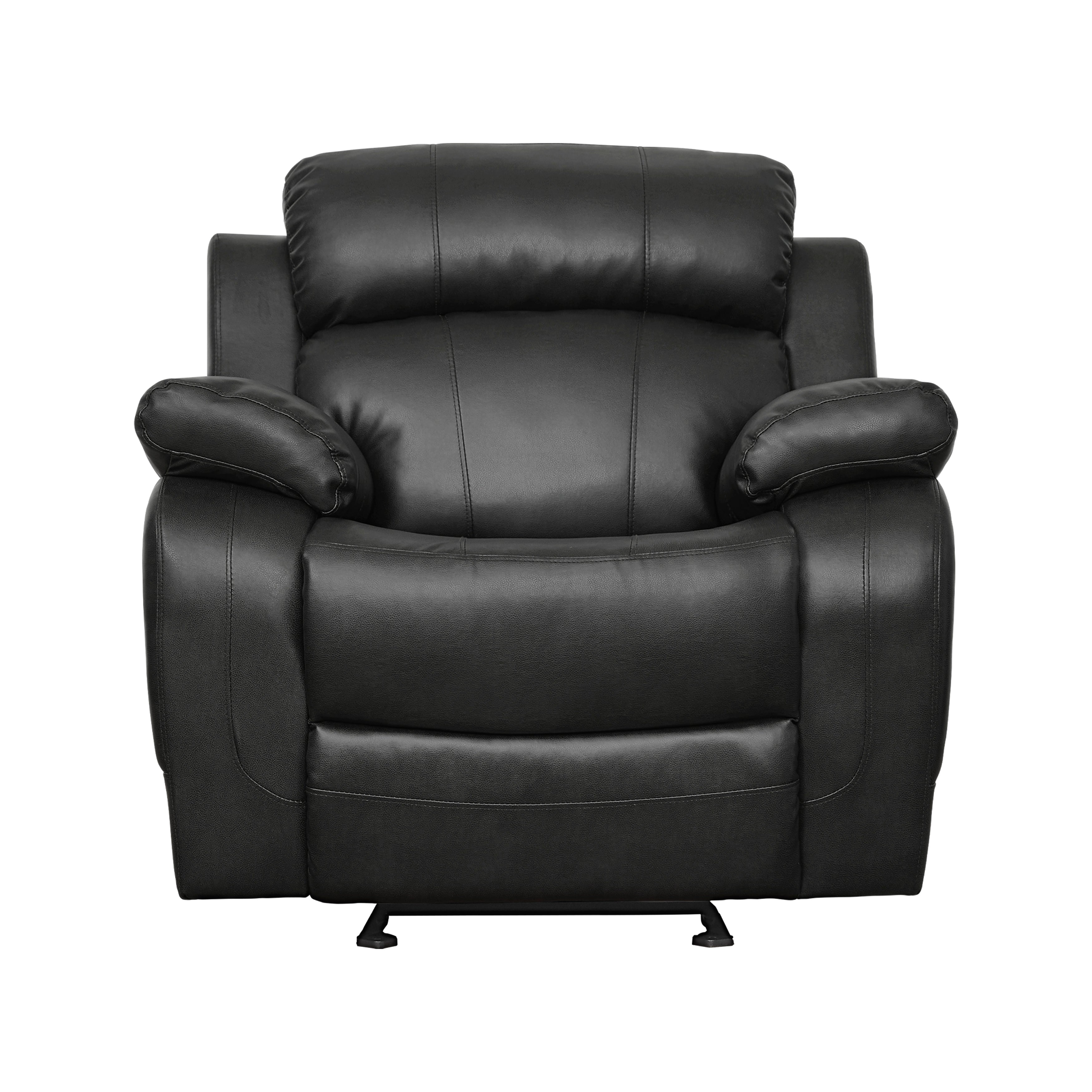 With the soothing rock of the reclining chair, your comfort is taken care of in the Marille Collection. The collection is offered in black faux leather.