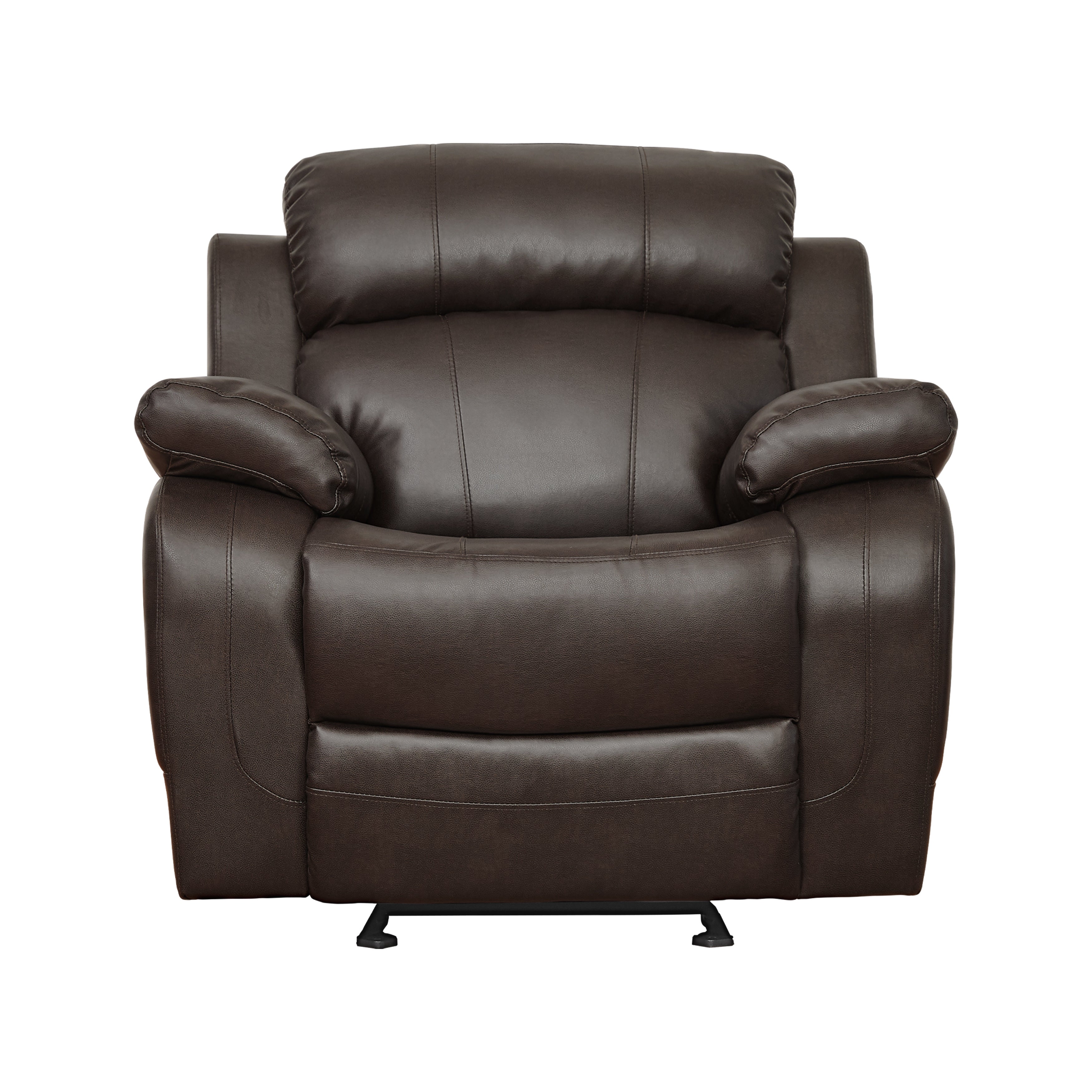 With the soothing rock of the reclining chair, your comfort is taken care of in the Marille Collection. The collection is offered in dark brown faux leather.
