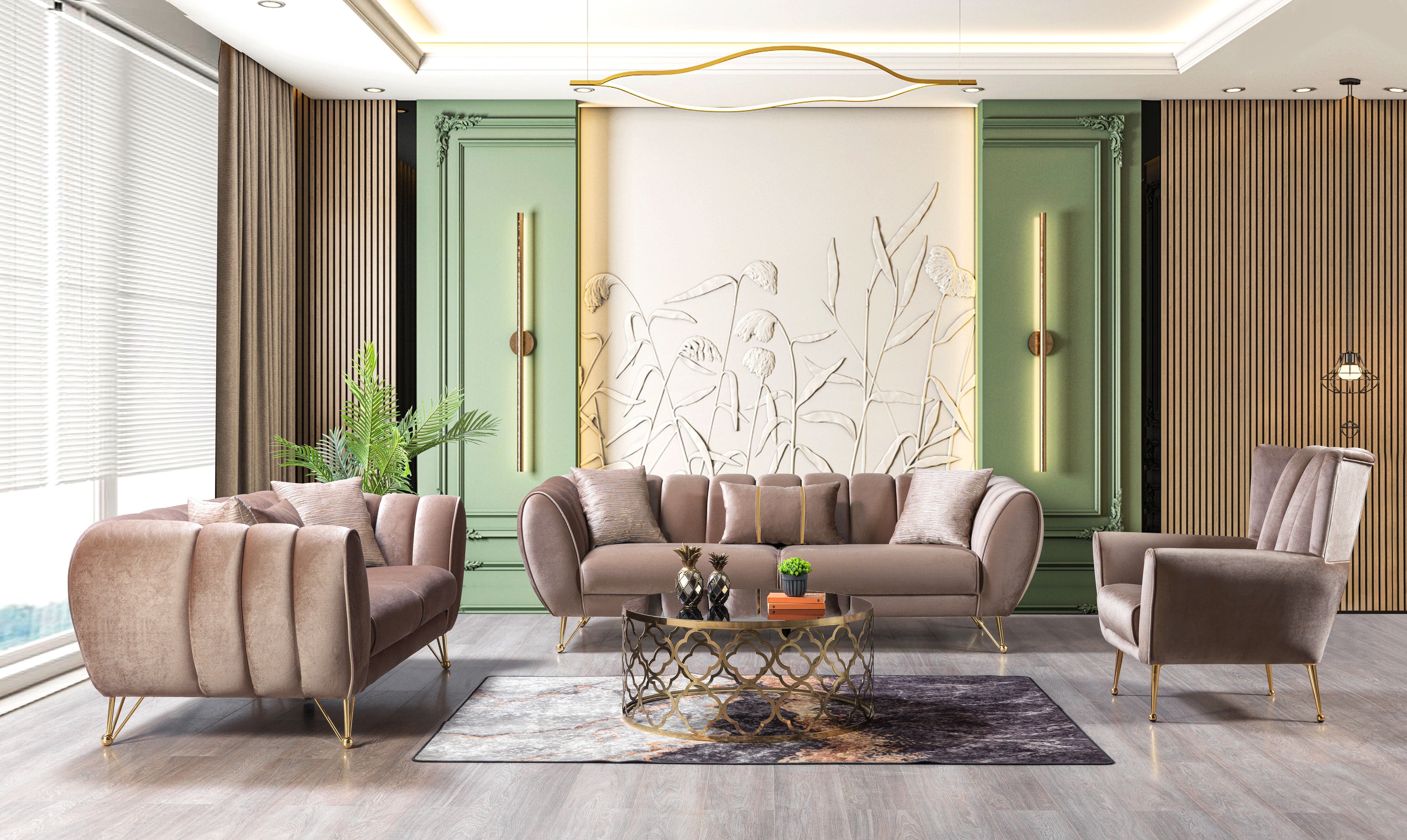 • Versatile Placement: Perfect for modern, glam, or transitional interiors; pairs beautifully with metallic accents, glass coffee tables, or neutral area rugs.