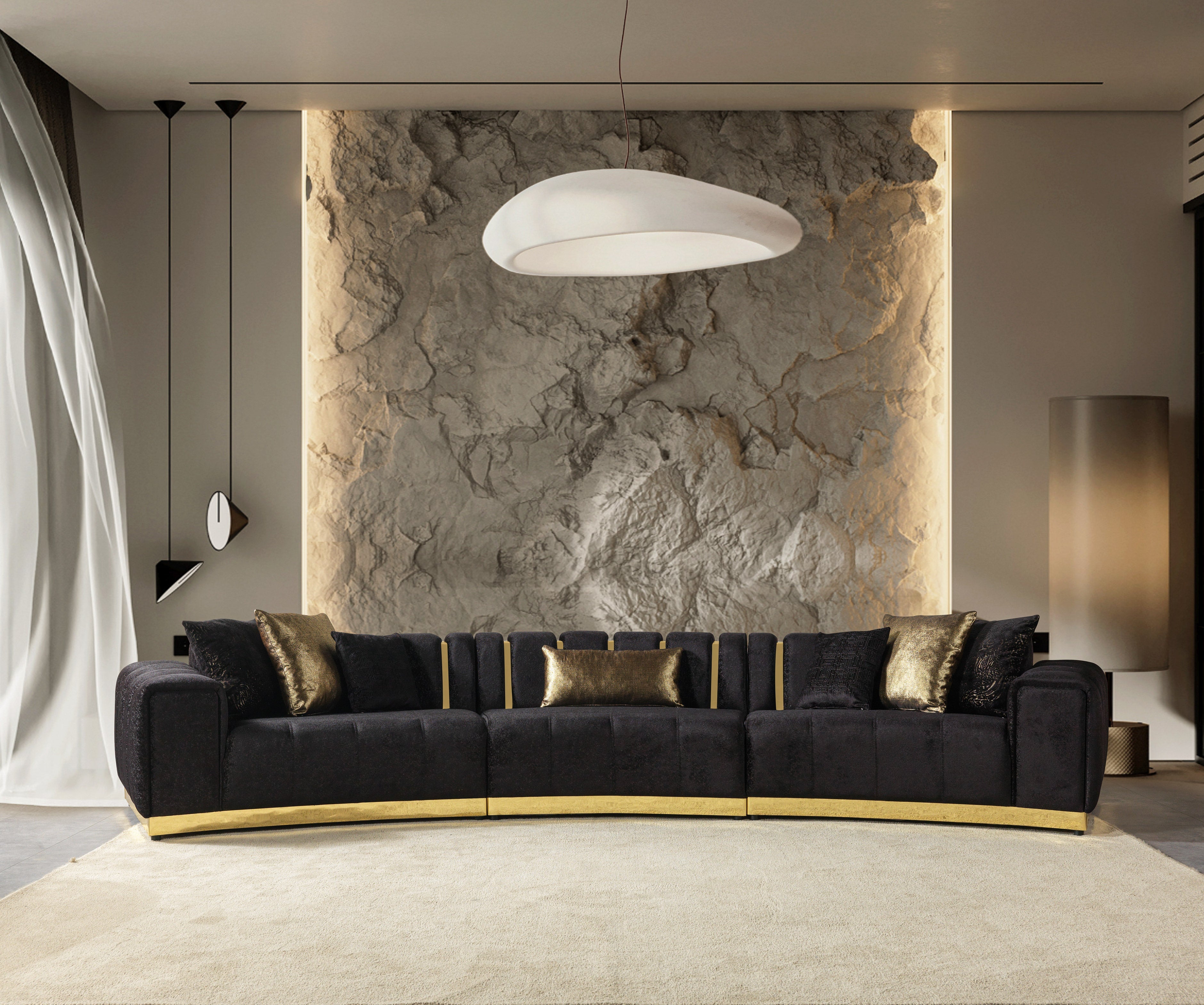 Elevate your living room into a statement of modern luxury and comfort with the Michelle Black Velvet 3-Piece Curved 165" Sectional by Nova Furniture. Designed for those who appreciate bold aesthetics and plush relaxation, this sectional is an invitation to indulge in both opulence and practicality. Imagine hosting elegant gatherings or cozy family evenings on a sofa that commands attention with its dramatic curved silhouette, deep black velvet upholstery, and eye-catching gold metallic base. Whether placed in a penthouse with a cityscape view or a spacious open-plan home, the Michelle sectional becomes the focal point of any environment—offering both a stunning visual presence and an unmatched seating experience. Perfect for contemporary spaces, high-end living rooms, and luxury apartments, this sectional accommodates large groups without compromising on individual comfort. Luna Furniture introduces Michelle Black Velvet 3-Piece Curved 165" Sectional to enhance the beauty of your living spaces. Luna Furniture.
