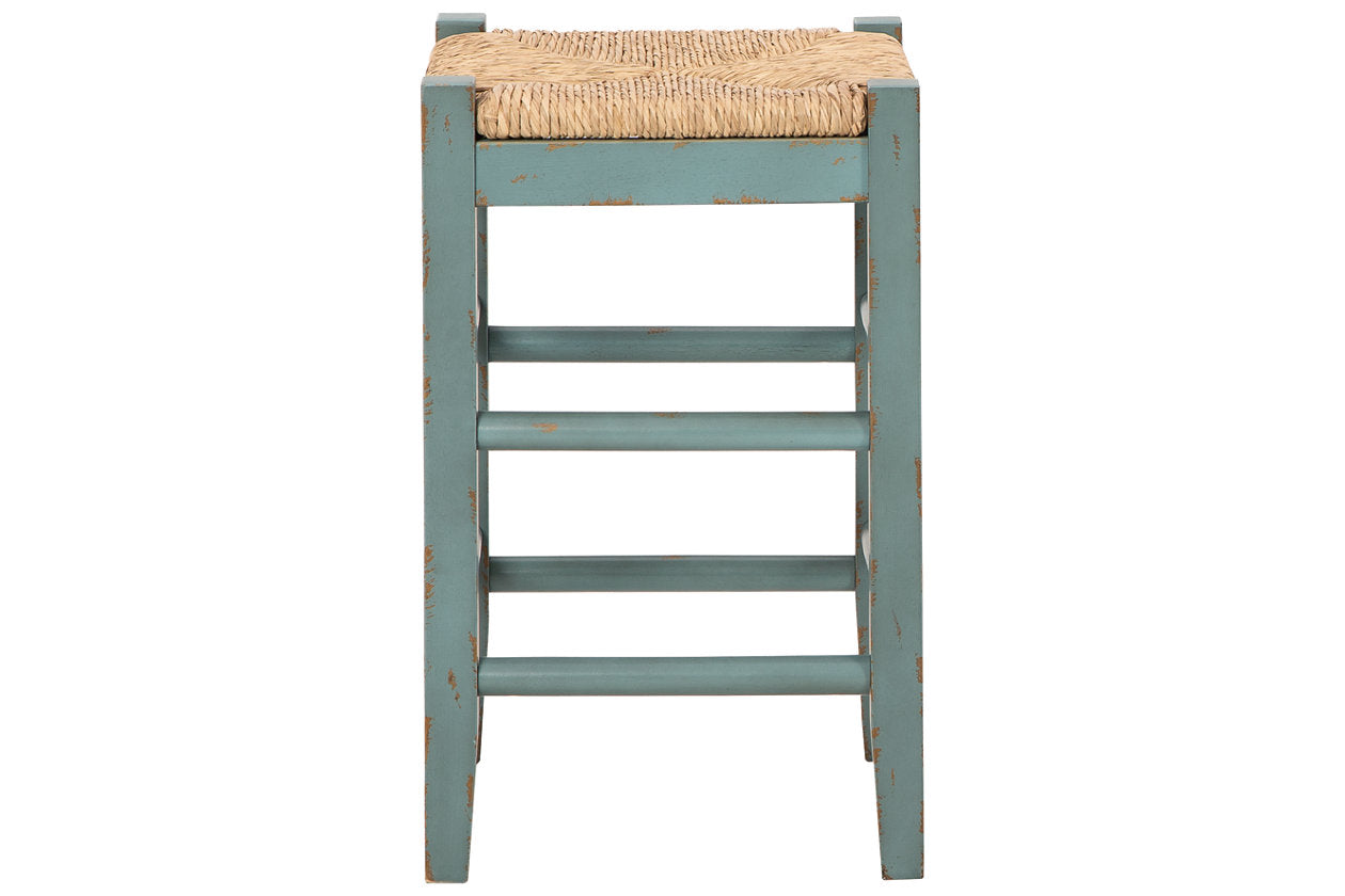 Bring the vintage casual vibe you love to the kitchen with this counter height bar stool. A stylish seating solution in a blue rubbed-through finish, this charming stool completes your dining space with ease. The woven seagrass seat and wood stretchers create an effortlessly beautiful look with endless possibilities. — Luna Furniture introduces Mirimyn Counter Height Bar Stool to enhance the beauty of your living spaces.
