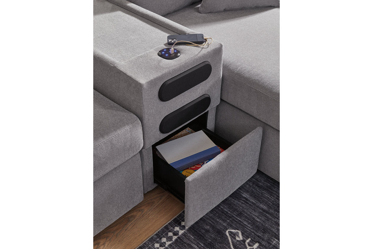 Looking cool and contemporary is great. But when it comes down to it, you’re all about low-maintenance lounging. With the performance fabric on this sectional with chaise, cleaning spills is a breeze. Its customizable modular design caters to your ever-changing needs, whether you need extra seating when guests drop by or you're setting up for family movie night. And built-in speakers with wireless connectivity turn your living room into an entertainment hub. So grab some popcorn, settle in and enjoy the show. Luna Furniture introduces Modmax 4-Piece Sectional with Chaise to enhance the beauty of your living spaces.