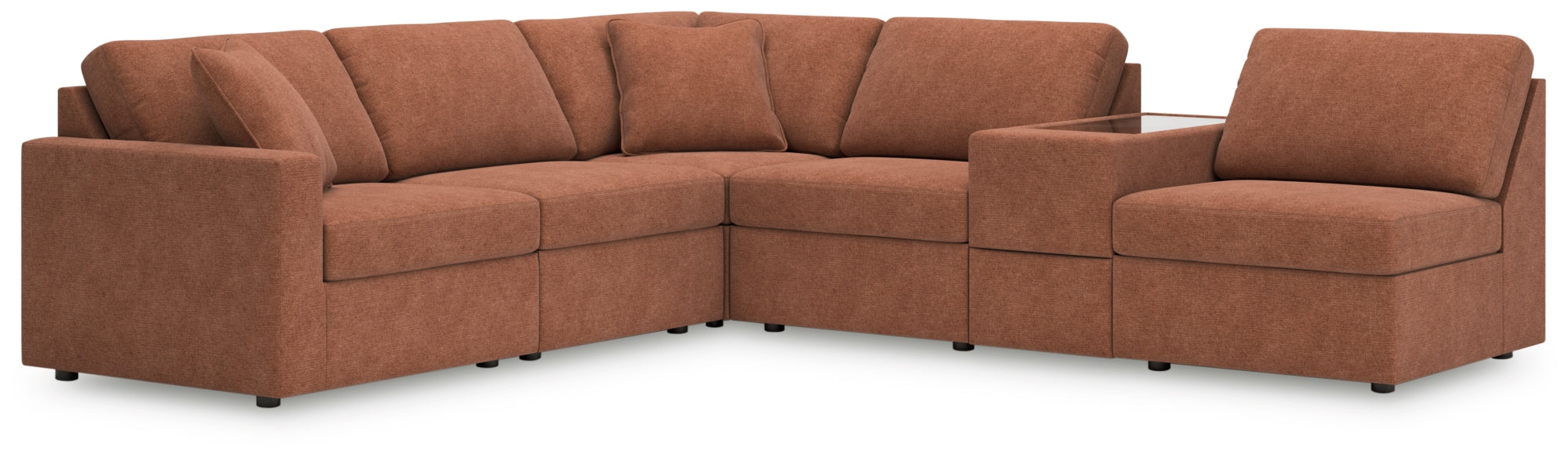 Looking cool and contemporary is great. But when it comes down to it, you’re all about low-maintenance lounging. With the performance fabric on this sectional with console, cleaning spills is a breeze. Its customizable modular design caters to your ever-changing needs. The console’s removable plexiglass top is the perfect beverage perch during family movie night or when guests drop by. And the lower pull-out drawer is just the spot for media storage and whatever else tickles your fancy. Luna Furniture introduces Modmax 6-Piece Sectional to enhance the beauty of your living spaces.