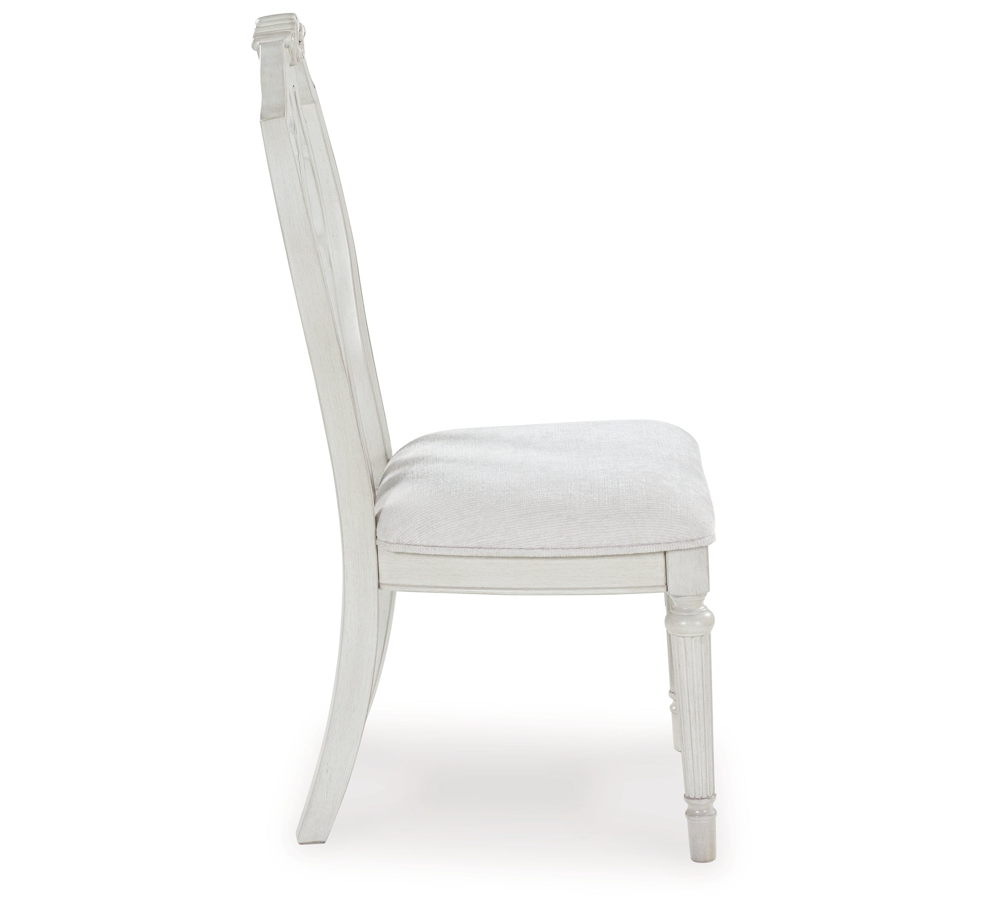 Transform your home into a haven of timeless elegance with this dining chair. Its traditional silhouette, adorned in a classic antiqued white finish, is paired with plush cushioning covered in light pearl gray upholstery. Whether you're settling in at mealtime or working from home, this chair serves your sense of relaxed refinement beautifully. — Luna Furniture introduces Montelaine Dining Chair to enhance the beauty of your living spaces.