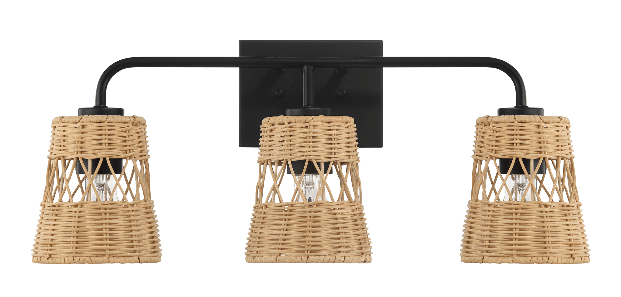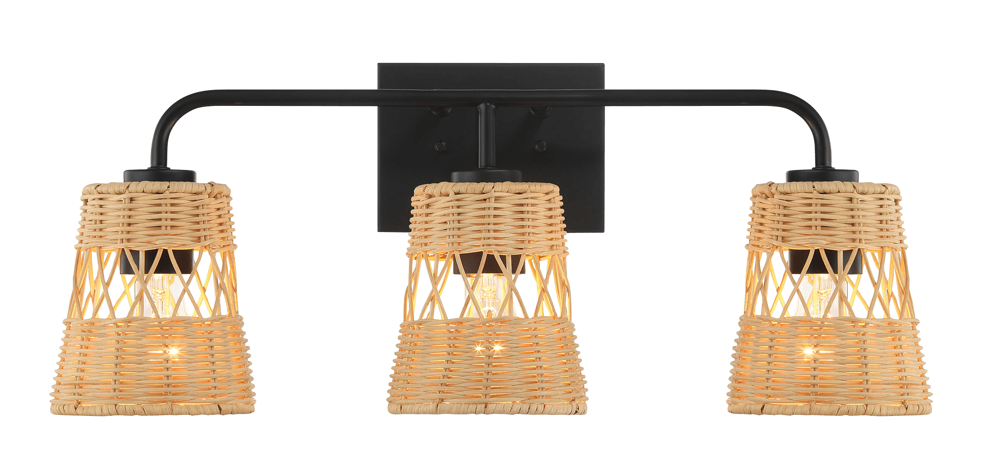 Moonlit Three Lights Wall Sconce With Rattan Shade, Bathroom Lighting Fixtures Over Mirror