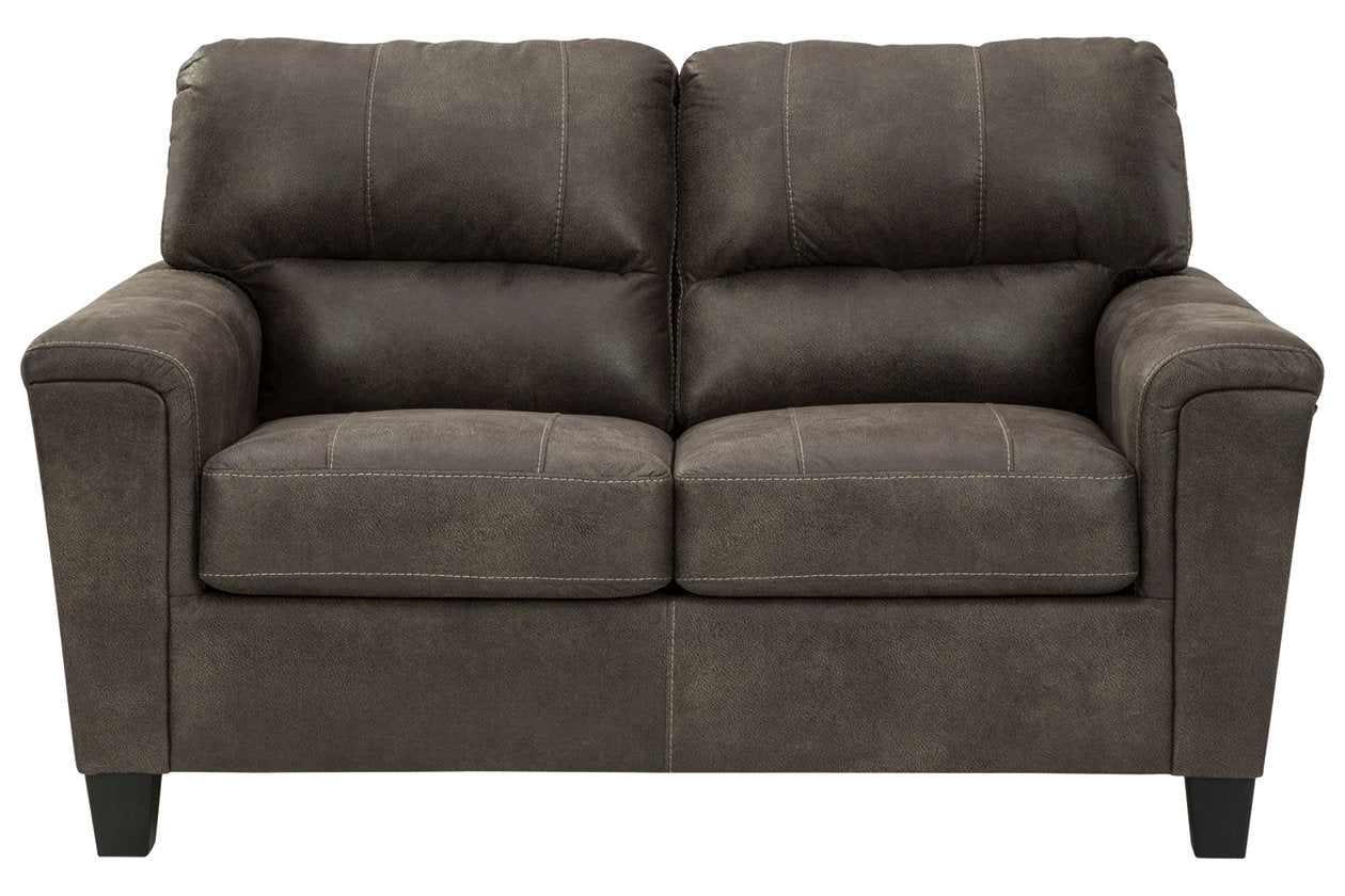 If you love the cool look of leather but long for the warm feel of fabric, you can take comfort in this loveseat. Wrapped in a fabulous faux leather with a weathered hue and hint of pebbly texture to resemble the real deal, this decidedly modern loveseat proves less is more. Elements include angled side profiling and track armrests wrapped with a layer of pillowy softness for that little something extra. Prominent jumbo stitching and clean-lined divided back styling lend fashion-forward flair. — Luna Furniture introduces Navi Loveseat to enhance the beauty of your living spaces.