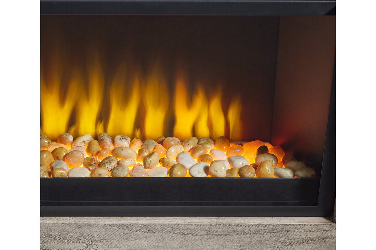 Balancing chic flair with a relaxed sensibility, this extra-large TV stand strikes just the right tone for rustic sophistication. Beautifully clean lines are subtly enhanced with relaxed distressing and saw marks for authentic barn wood character. Adding that much more show-stopping style is an LED fireplace insert that operates with or without heat. The fireplace insert comes with optional faux glass crystals and natural stones, so you can customize the look of the flame bed. Luna Furniture introduces Naydell 92" TV Stand with Electric Fireplace to enhance the beauty of your living spaces.