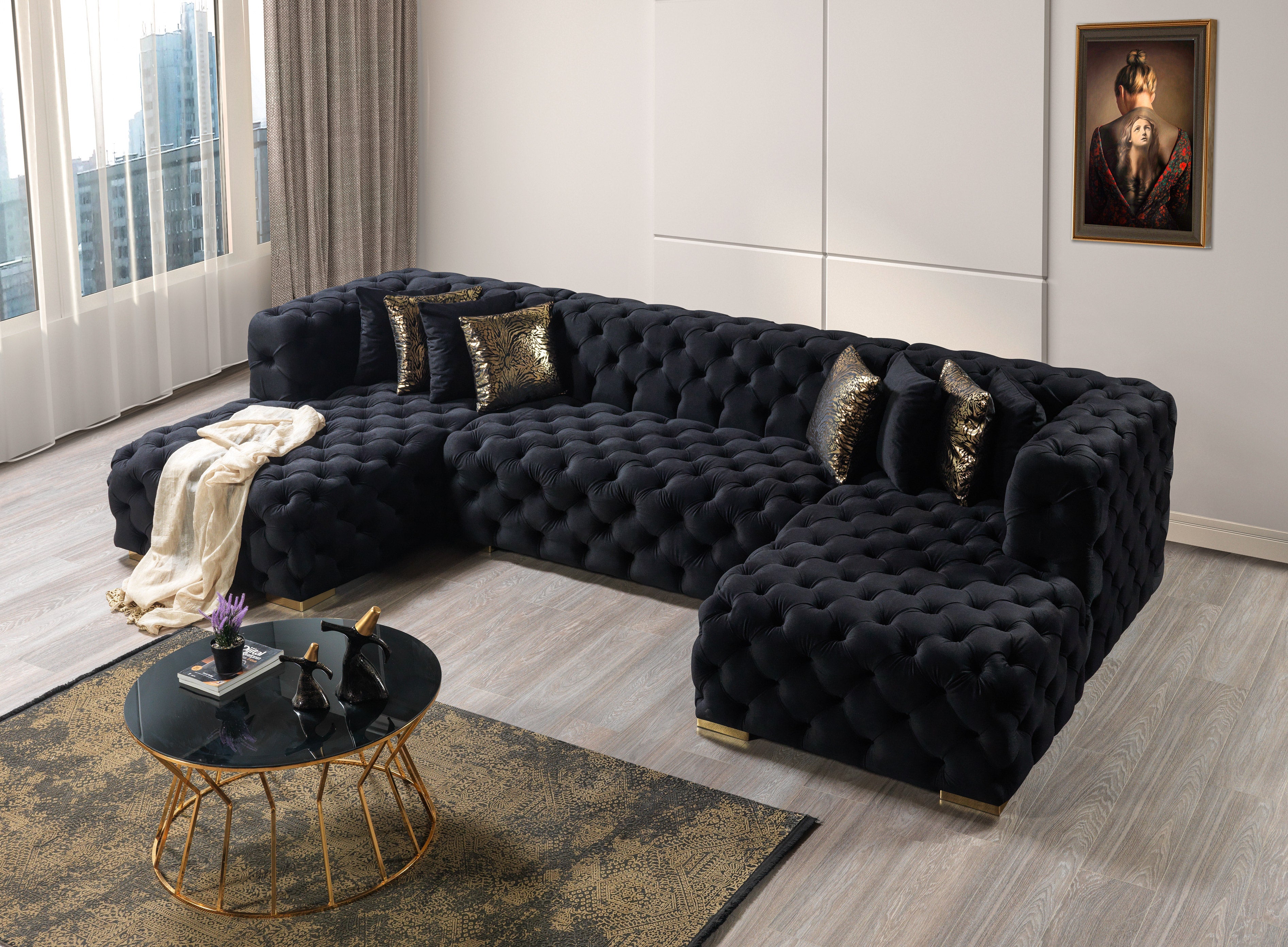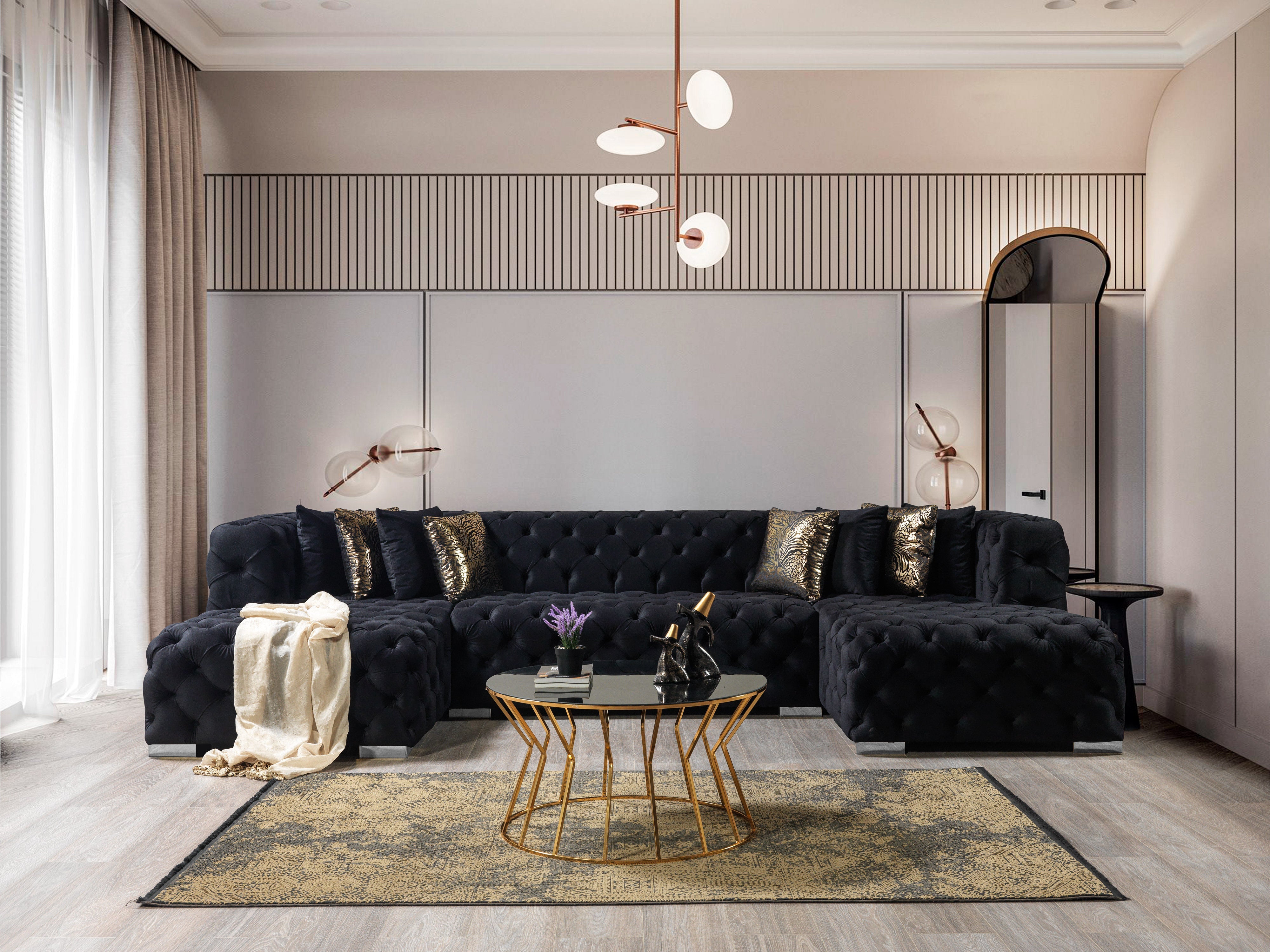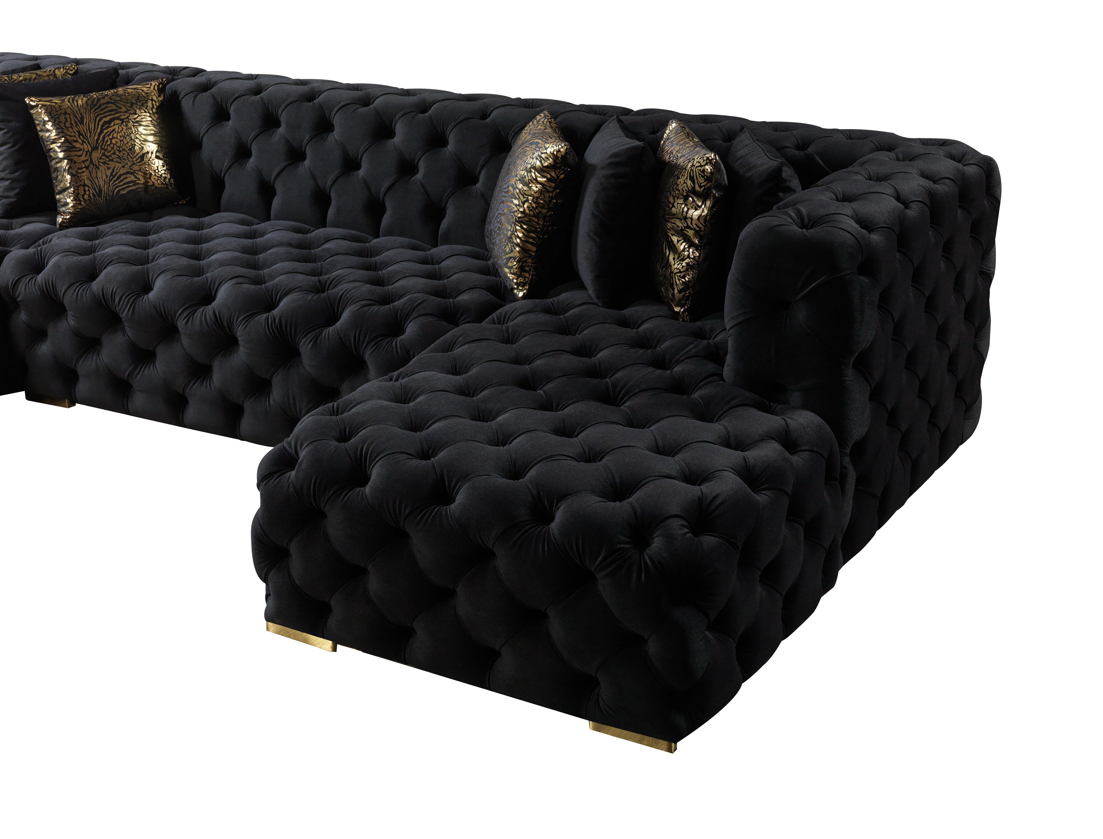 Experience the height of contemporary glamour with the Neva Black Velvet Double Chaise Sectional. This statement piece is designed for those who appreciate both opulence and comfort in their living space. Imagine welcoming guests into an elegantly appointed room, where the Neva sectional immediately commands attention with its deep black velvet upholstery, fully hand-tufted finish, and inviting double chaise lounges. The plush, velvety surface feels indulgently soft to the touch, while the symmetrical U-shaped design encourages relaxed conversation, movie nights, or simply stretching out in luxury. Whether you’re hosting a stylish cocktail party or enjoying a quiet evening with family, this sectional transforms your living area into a refined sanctuary. Luna Furniture introduces Neva Black Velvet Double Chaise Sectional to enhance the beauty of your living spaces. Luna Furniture.