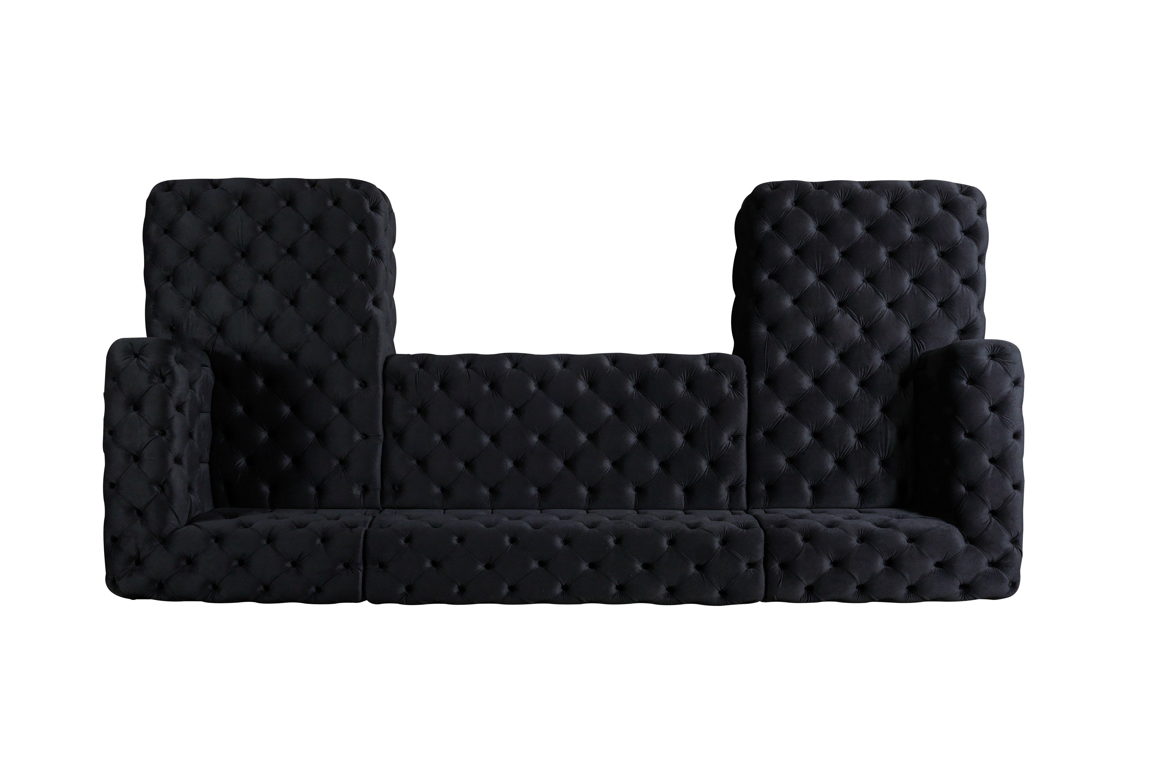 Experience the height of contemporary glamour with the Neva Black Velvet Double Chaise Sectional. This statement piece is designed for those who appreciate both opulence and comfort in their living space. Imagine welcoming guests into an elegantly appointed room, where the Neva sectional immediately commands attention with its deep black velvet upholstery, fully hand-tufted finish, and inviting double chaise lounges. The plush, velvety surface feels indulgently soft to the touch, while the symmetrical U-shaped design encourages relaxed conversation, movie nights, or simply stretching out in luxury. Whether you’re hosting a stylish cocktail party or enjoying a quiet evening with family, this sectional transforms your living area into a refined sanctuary. Luna Furniture introduces Neva Black Velvet Double Chaise Sectional to enhance the beauty of your living spaces. Luna Furniture.