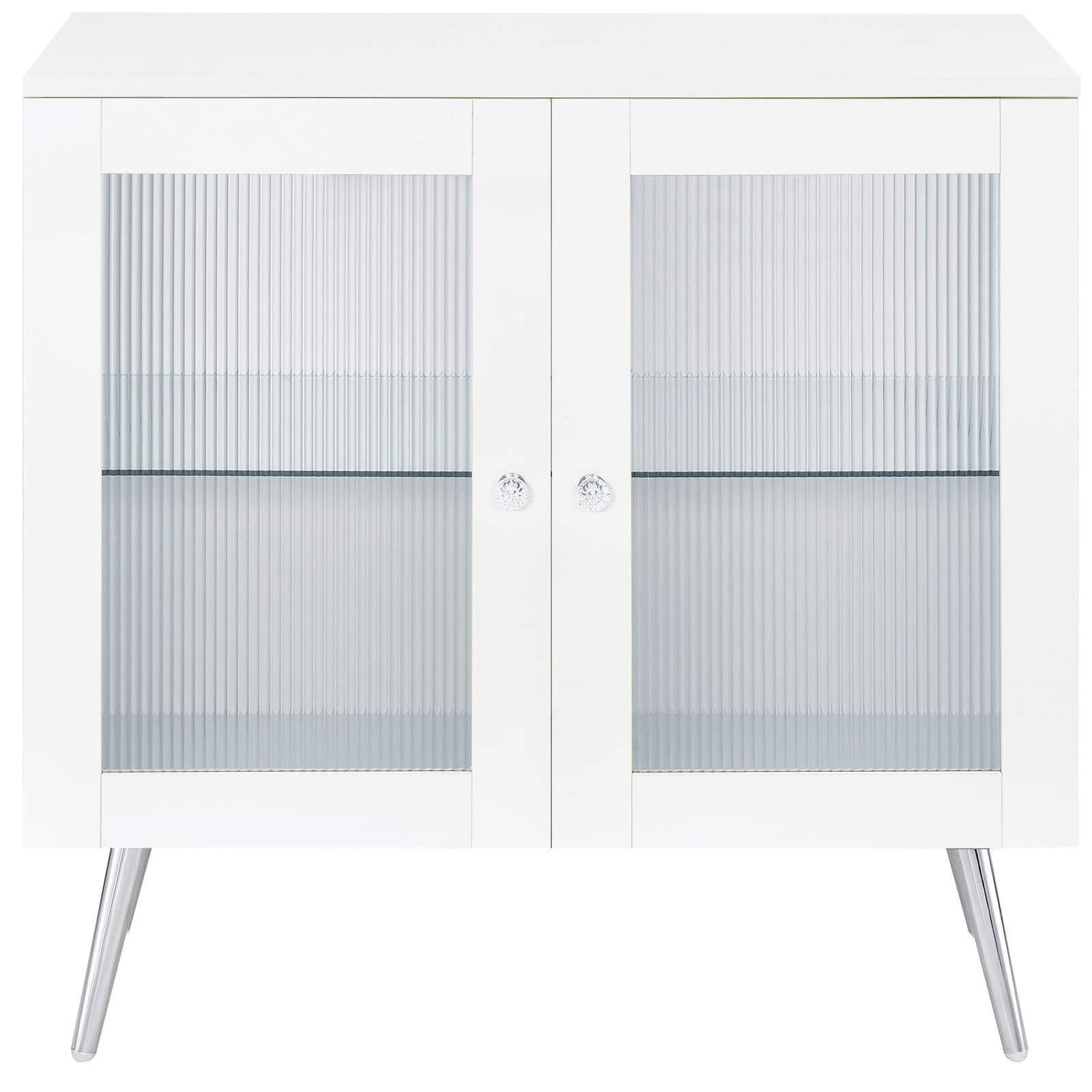 Nieta White High Gloss and Chrome 2-Tier Accent Cabinet with Glass Shelf