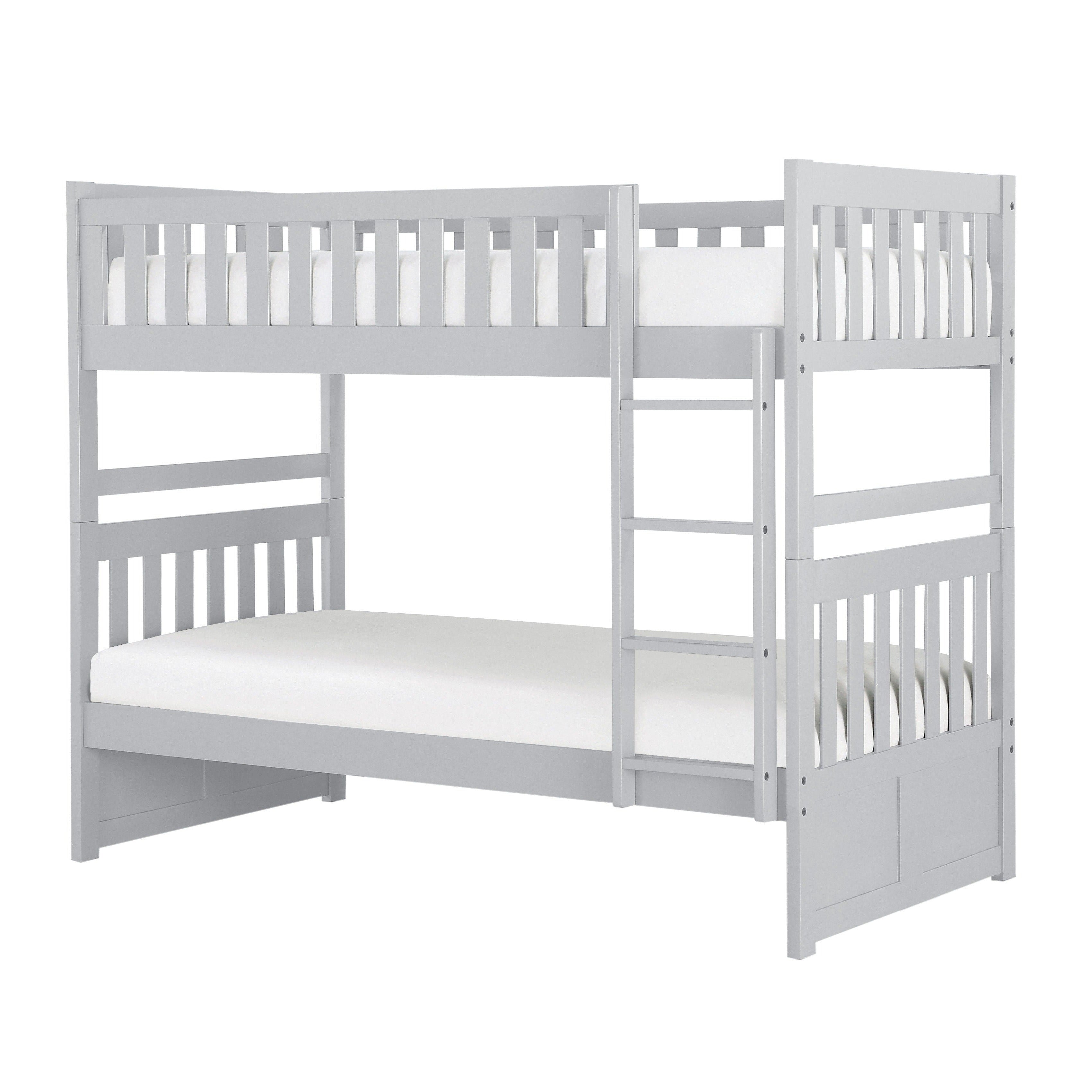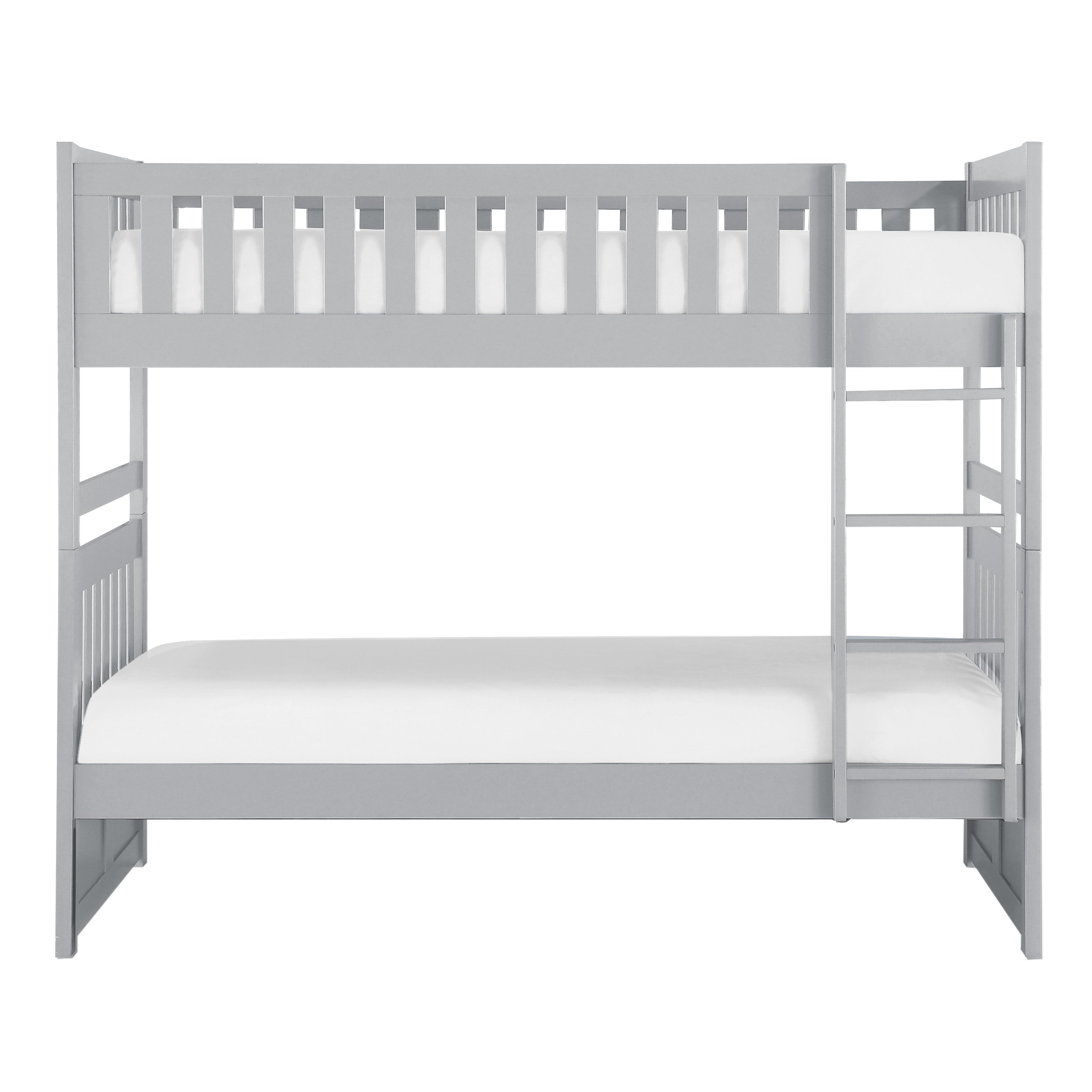 Maximizing sleep space is achieved with the stylish Orion Collection. This transitional twin over twin bunkbed is featured in a gray finish making it an appropriate choice for a number of youth bedroom settings. Also available: twin over full, full over full bunkbed, twin over twin trundle bed with two built-in drawers, and twin/twin bunk with reversible storage stair steps, underbed dual toy boxes, twin trundle, nightstand, dresser, mirror and chest.