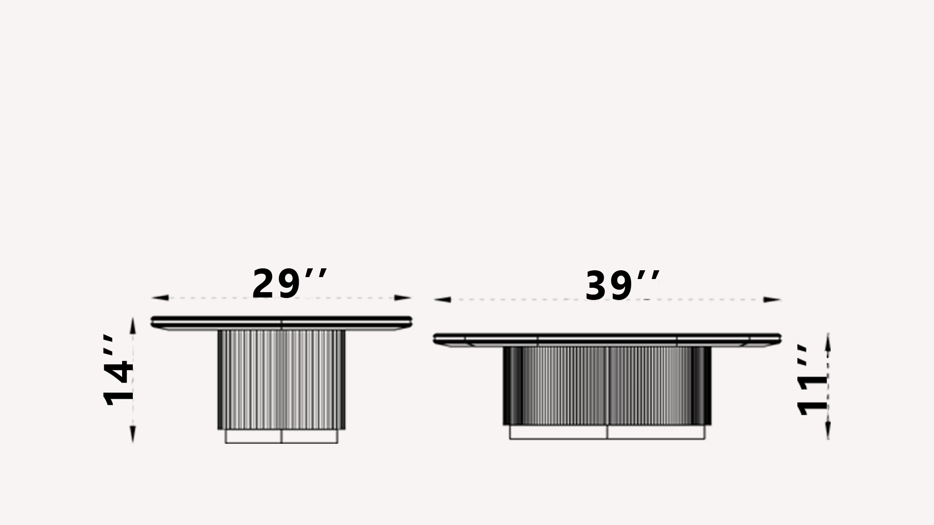 - Table 1: Width 29.5 in × Height 14.2 in