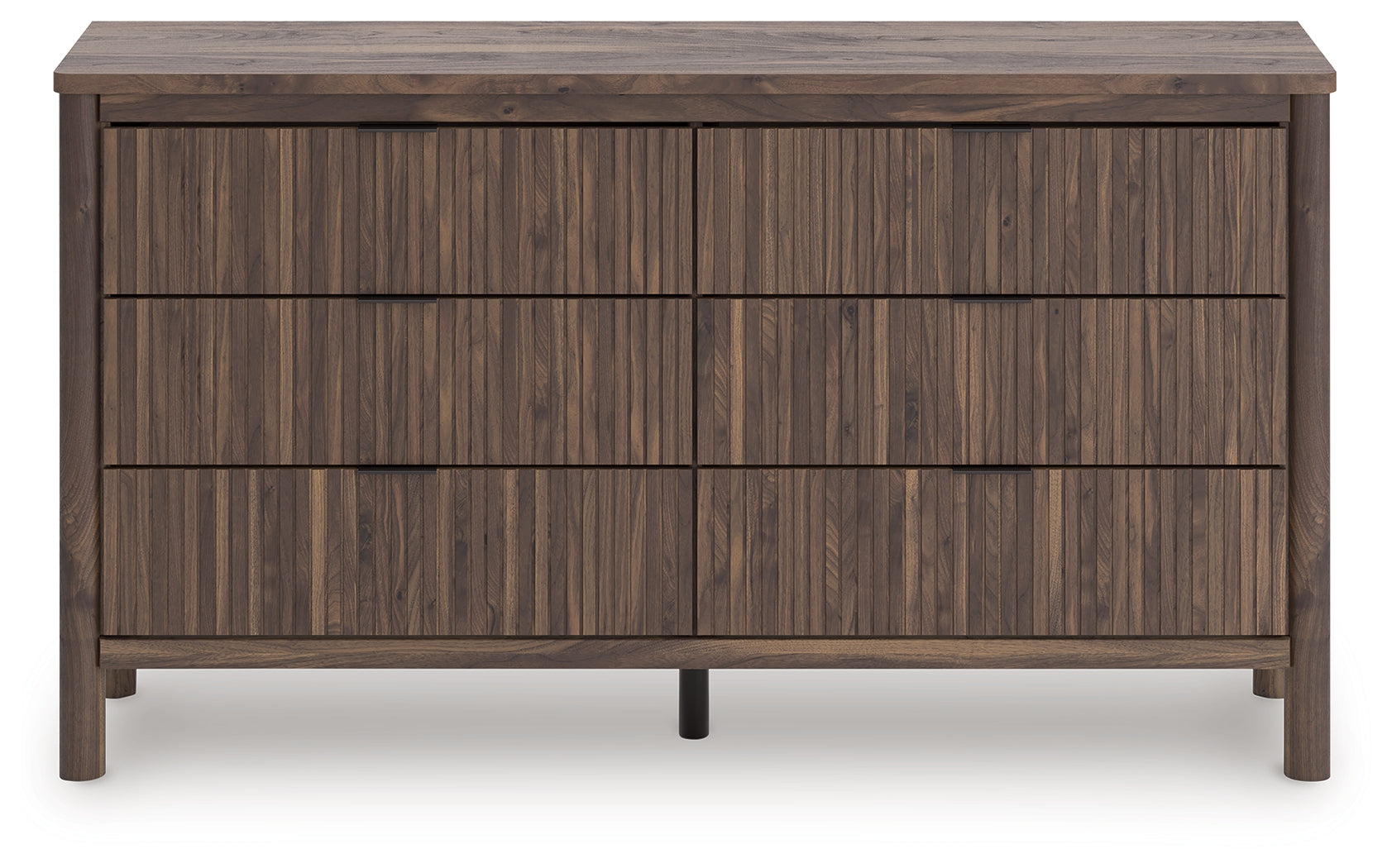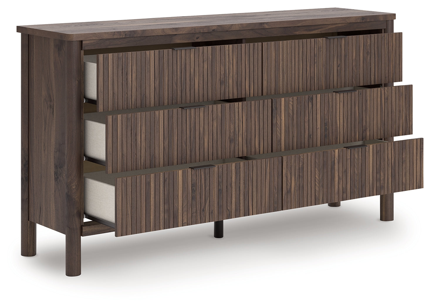 Crafted with both form and function in mind, this dresser brings a dash of retro-cool character to your modern boho aesthetic. Reeded accents add an on-trend touch to its classic silhouette. Warmly welcoming with a rich brown finish, this dresser pairs well with muted hues, earth tones and other neutrals alike. What a refined take on easygoing style.