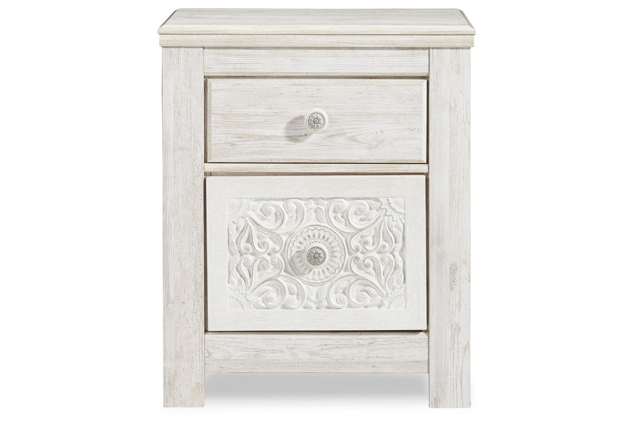 A one-of-a-kind girl deserves a bedroom retreat that celebrates her personal flair—and this nightstand is so befitting. Wowing with artful, carved-effect detailing and richly distressed whitewash finish, this two-drawer nightstand is a dream come true if you’re searching for something delightfully different. And with USB device charging, this nightstand is right up to speed with her high-tech lifestyle. — Luna Furniture introduces Paxberry Nightstand to enhance the beauty of your living spaces.