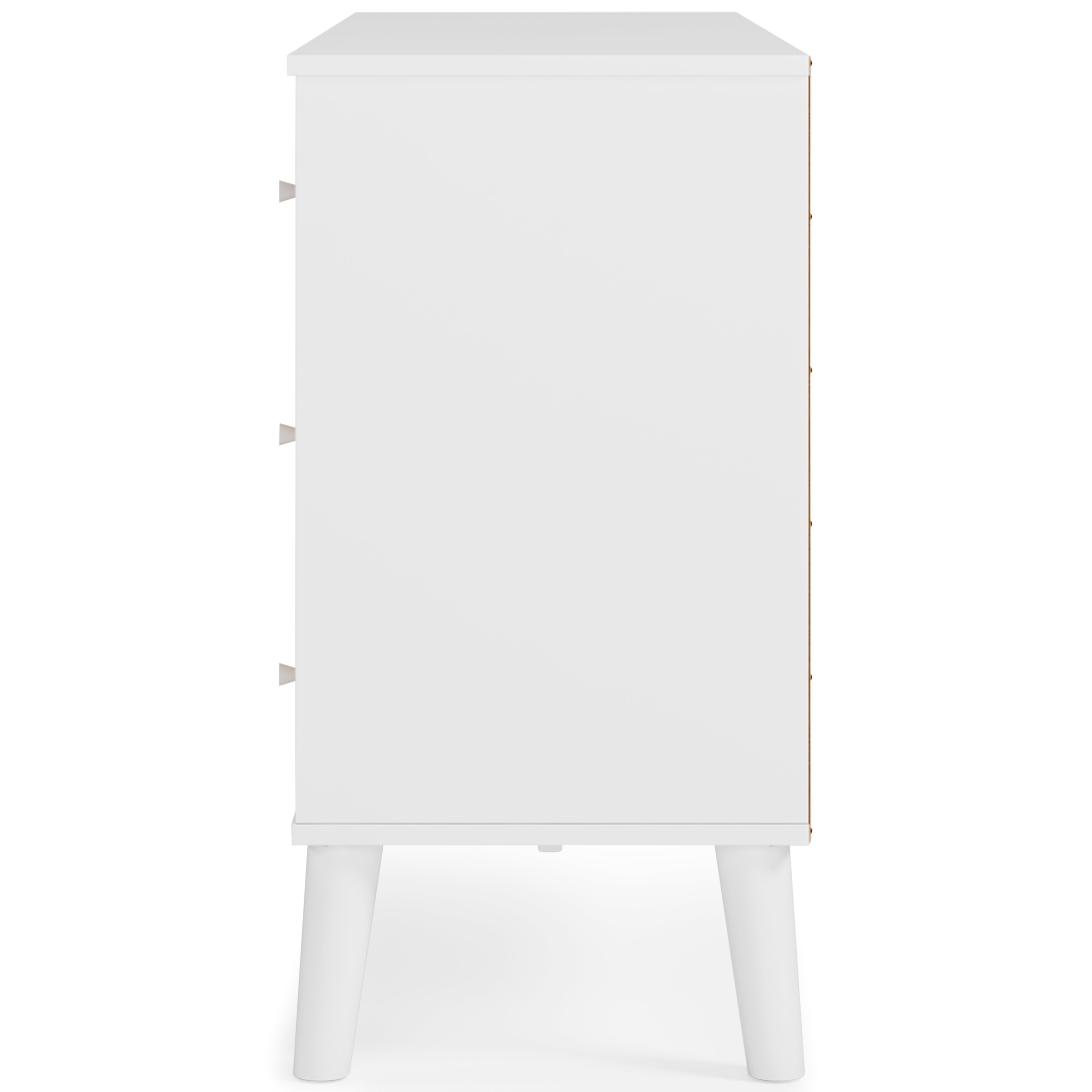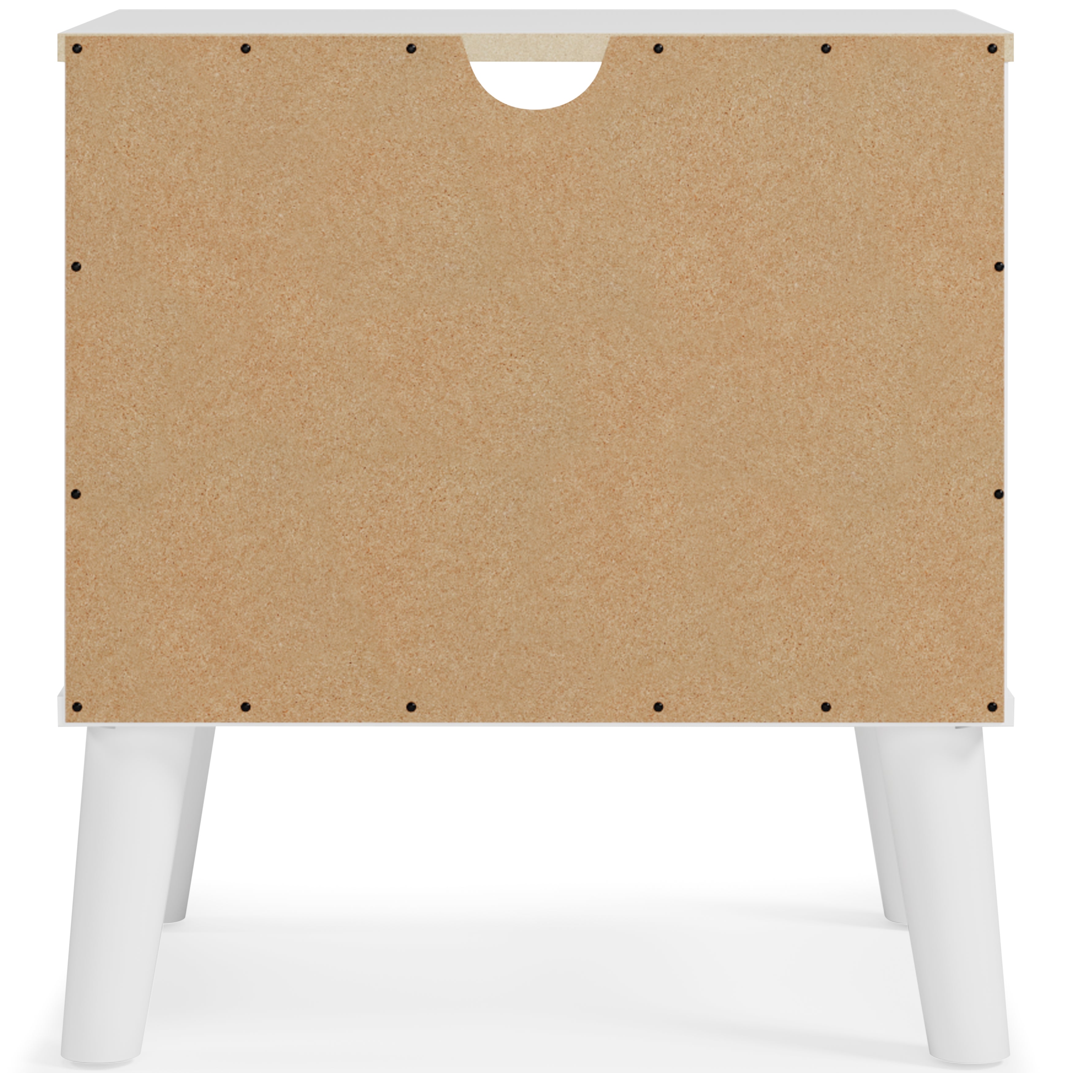 The perfect marriage of contemporary and casual style, this bedroom package is a charming addition to your home. The set is expressive with its two-tone look, which pairs a solid matte white finish and a replicated sugarberry wood grain pattern. Drawers with white knobs provide stylish storage, while splay legs add a finishing touch.