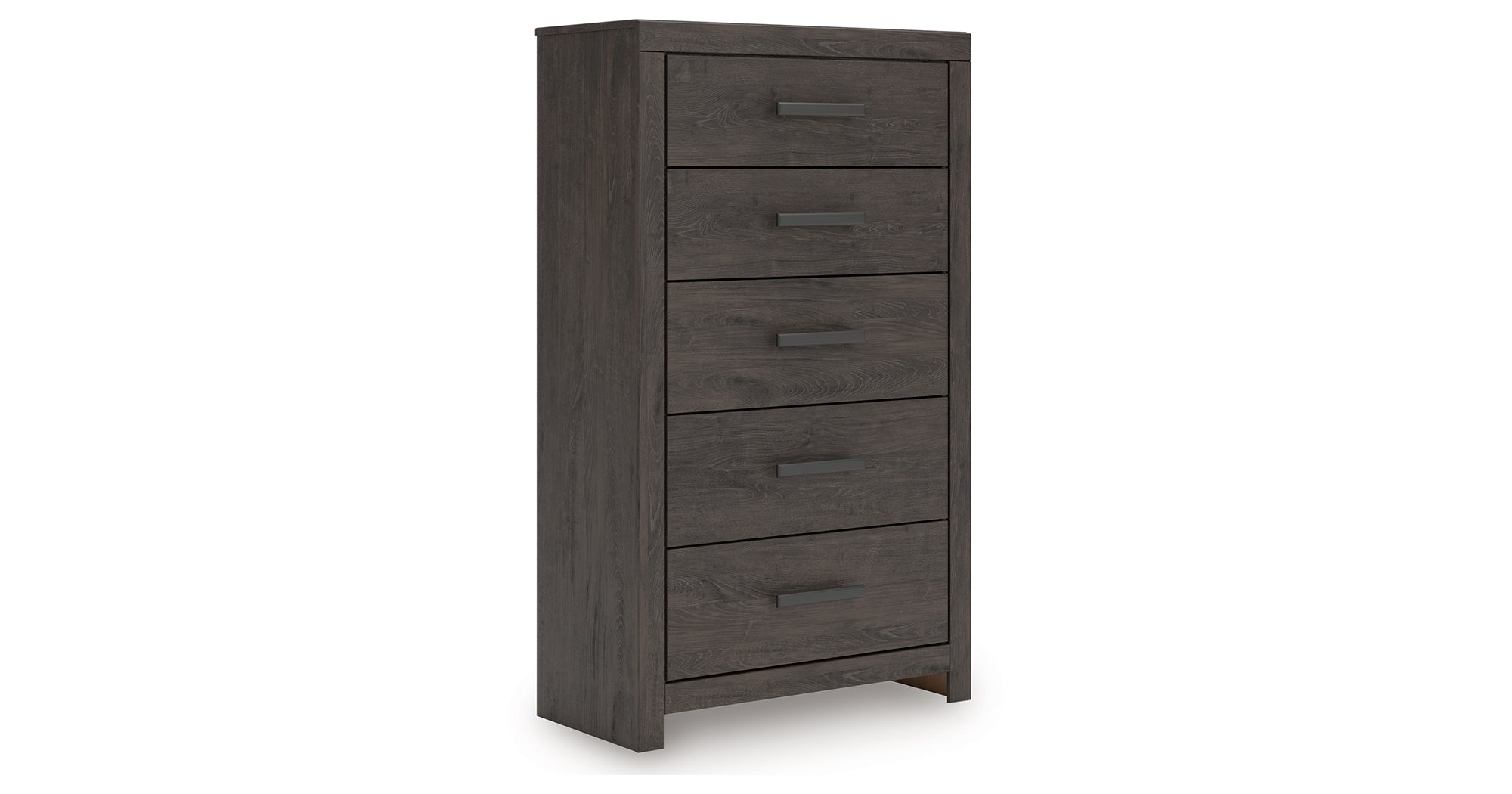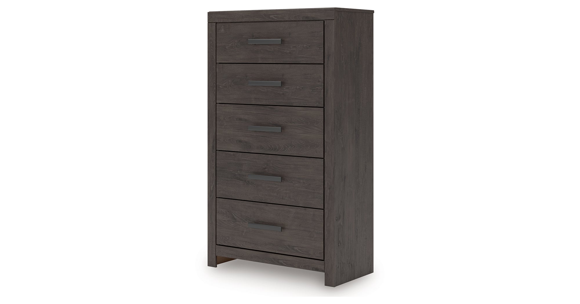 Designed with everyday style in mind, this chest of drawers is a simply chic approach to modern living. A dark charcoal finish blends black and brown undertones, creating a versatile look that effortlessly pairs with your existing pieces. And for must-have function, five smooth-gliding drawers store clothes and linens in charming fashion. — Luna Furniture introduces Prendonea Chest of Drawers to enhance the beauty of your living spaces.