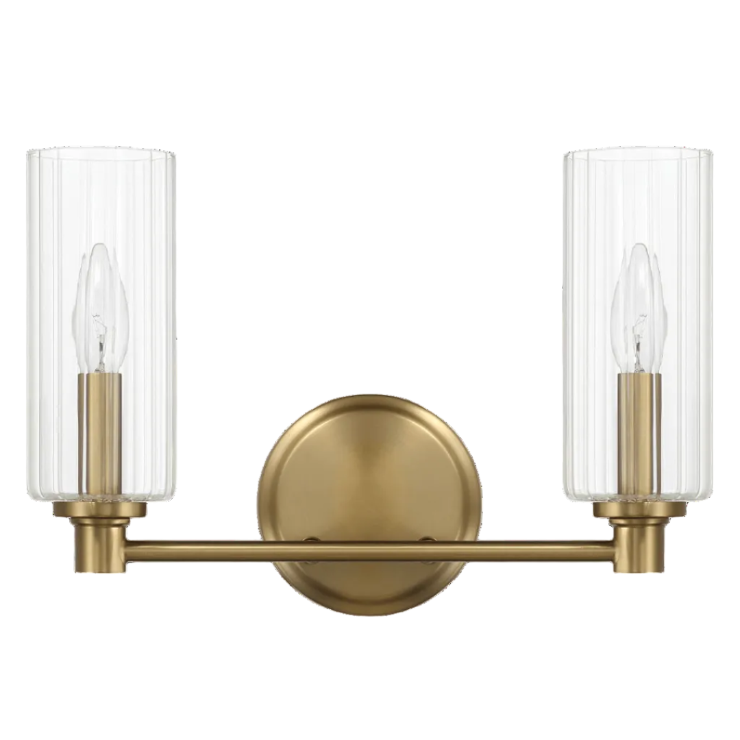 Regal Double Light Vanity With Clear Ribbed Glass - Satin Brass