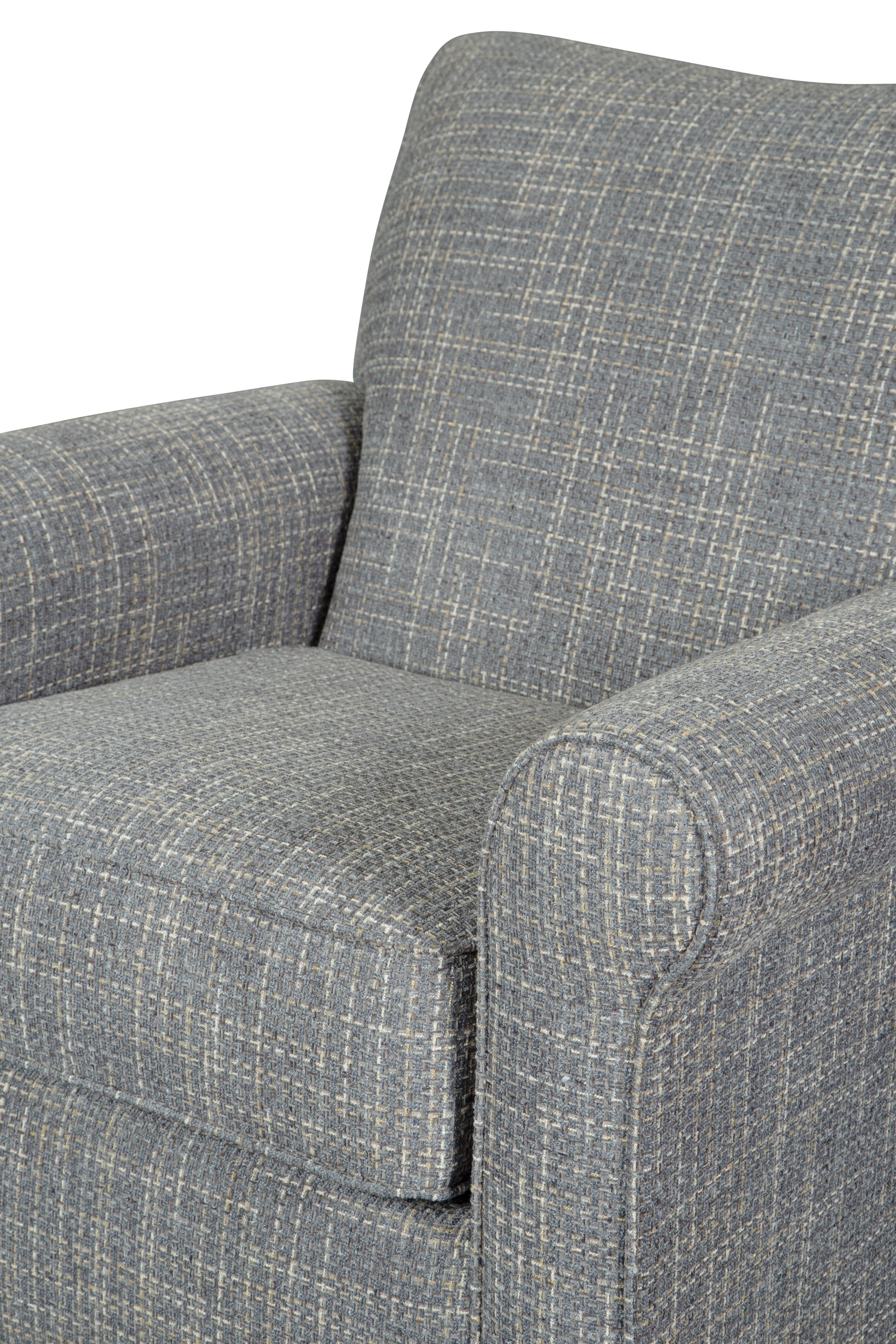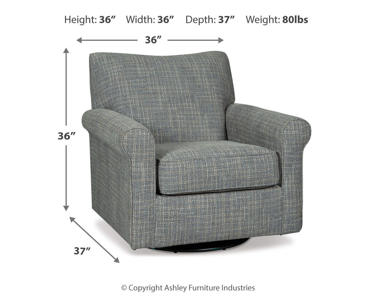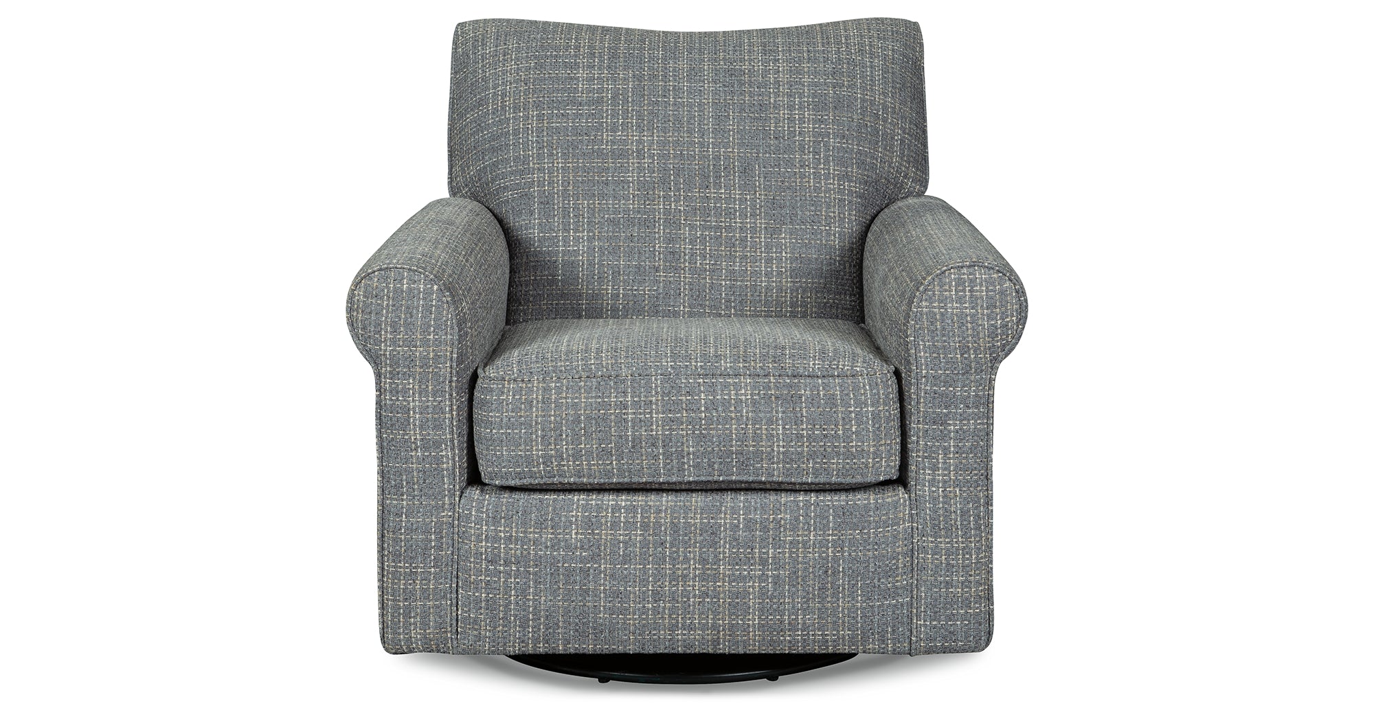 Sporting a tantalizing tweed weave fabric in such a soothing blue hue, this swivel glider accent chair gives the classic roll arm chair a modern twist. Smooth, 360-degree swivel caters to your comfort—and your viewing pleasure. Gentle glider feature is designed to rock your cares away. — Luna Furniture introduces Renley Accent Chair to enhance the beauty of your living spaces.