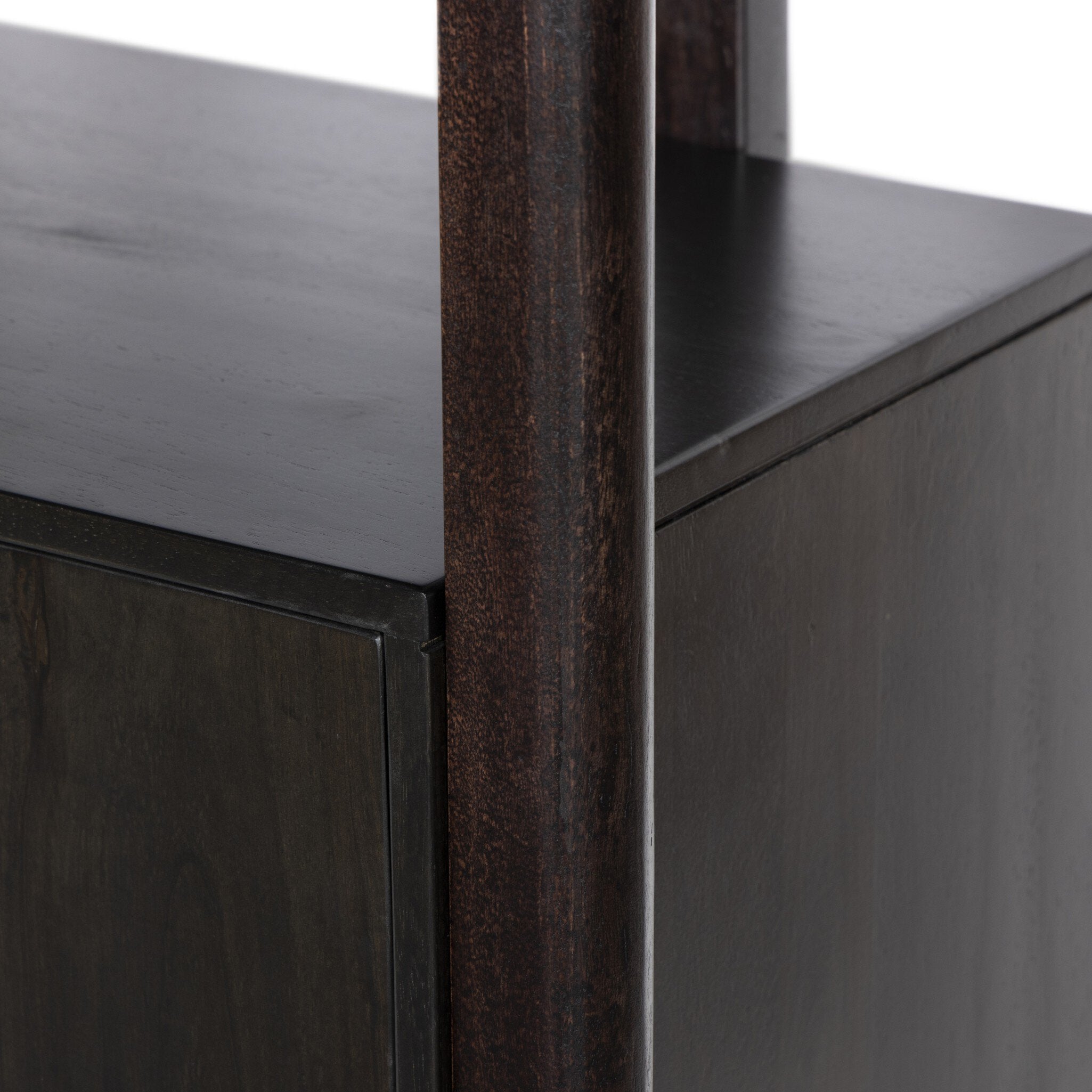 - Item Name: Reza Bookcase in Worn Black Acacia