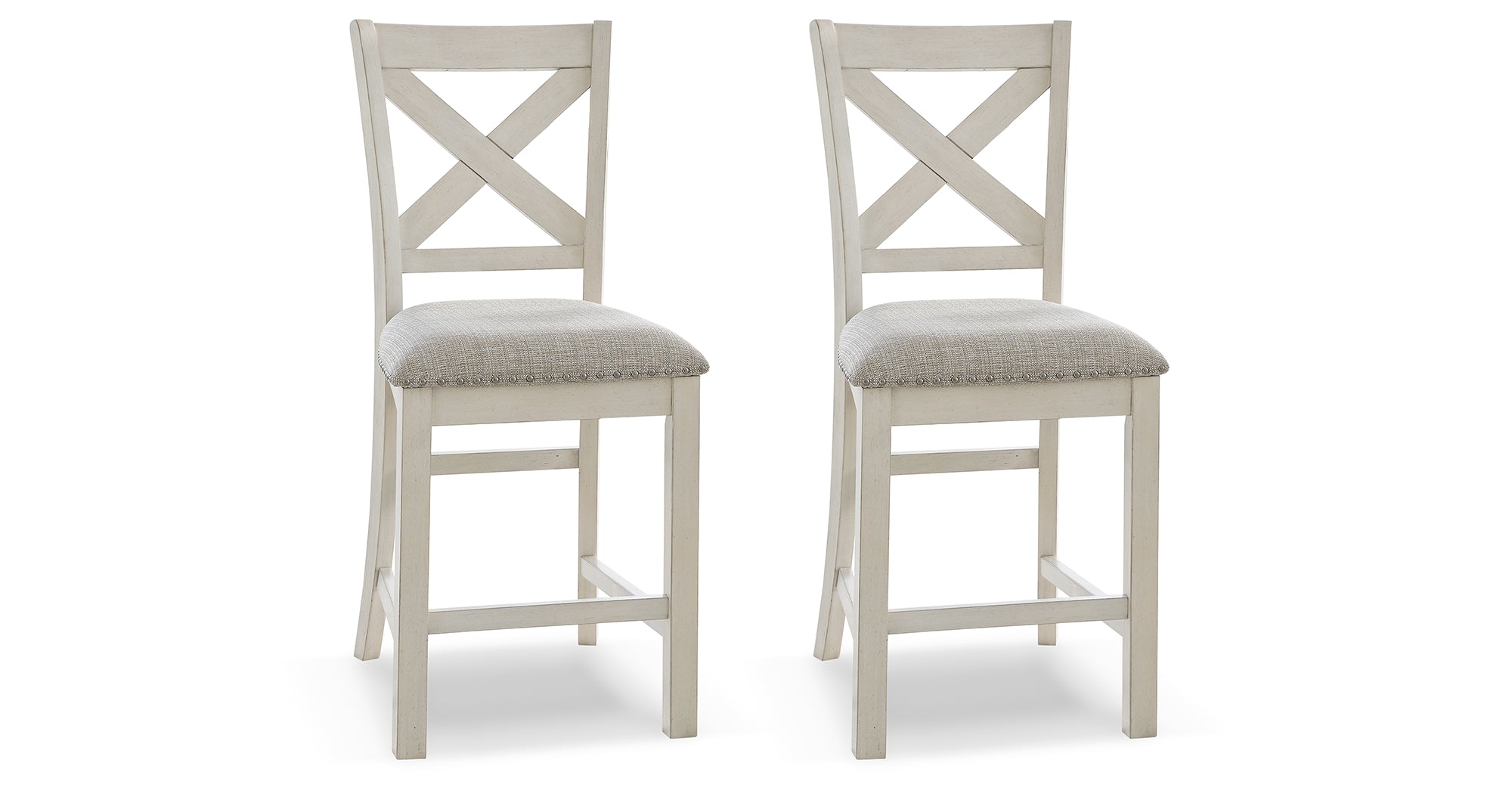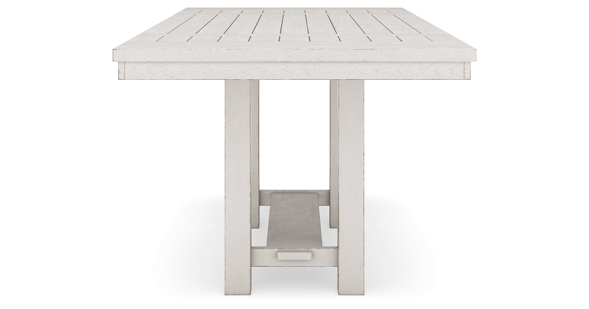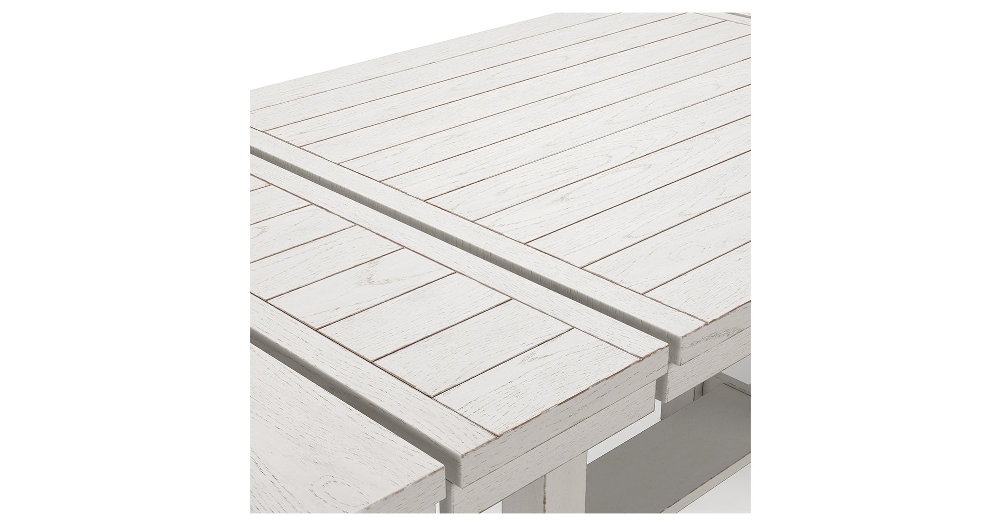This dining package is sure to impress come mealtime. With its antiqued white finish and a planked effect tabletop, farmhouse-style dining has never been so fashionable. All that’s missing is you and your family.