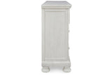 Elegant, timeless furnishings take your bedroom to the next level. Nothing does that better than this dresser. The antiqued white finish with a wonderful grain texture radiates sophistication, while the dark bronze-tone hardware adds an ornate touch. A hidden pull-out tray behind the top middle drawer puts your small valuables out of sight. Felt-finished top drawers round out the piece for the ultimate tasteful bedroom. — Luna Furniture introduces Robbinsdale Dresser to enhance the beauty of your living spaces.