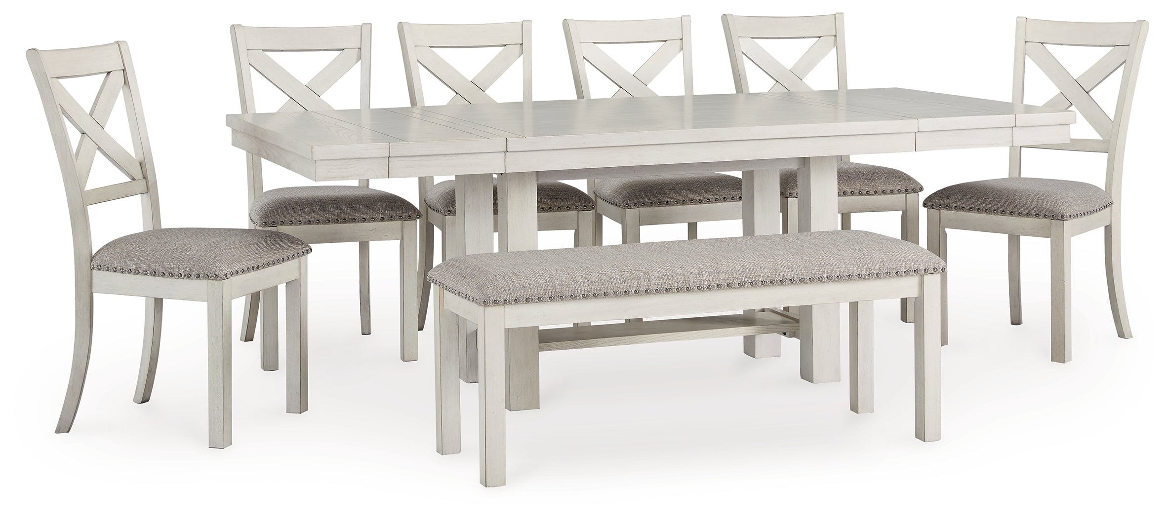 Robbinsdale Dining Table and 6 Chairs and Bench in Antique White