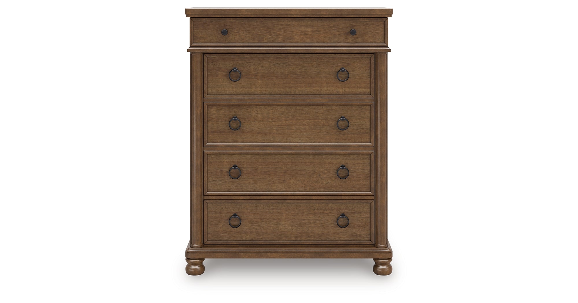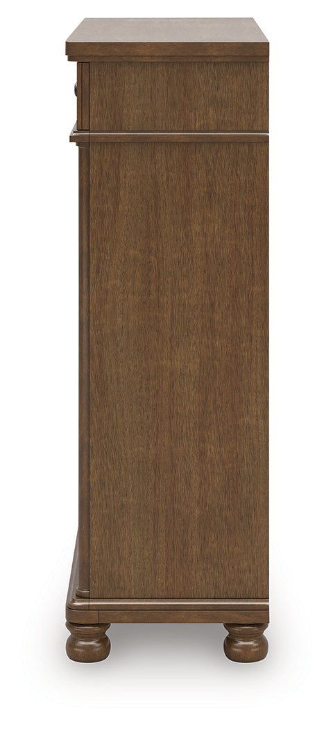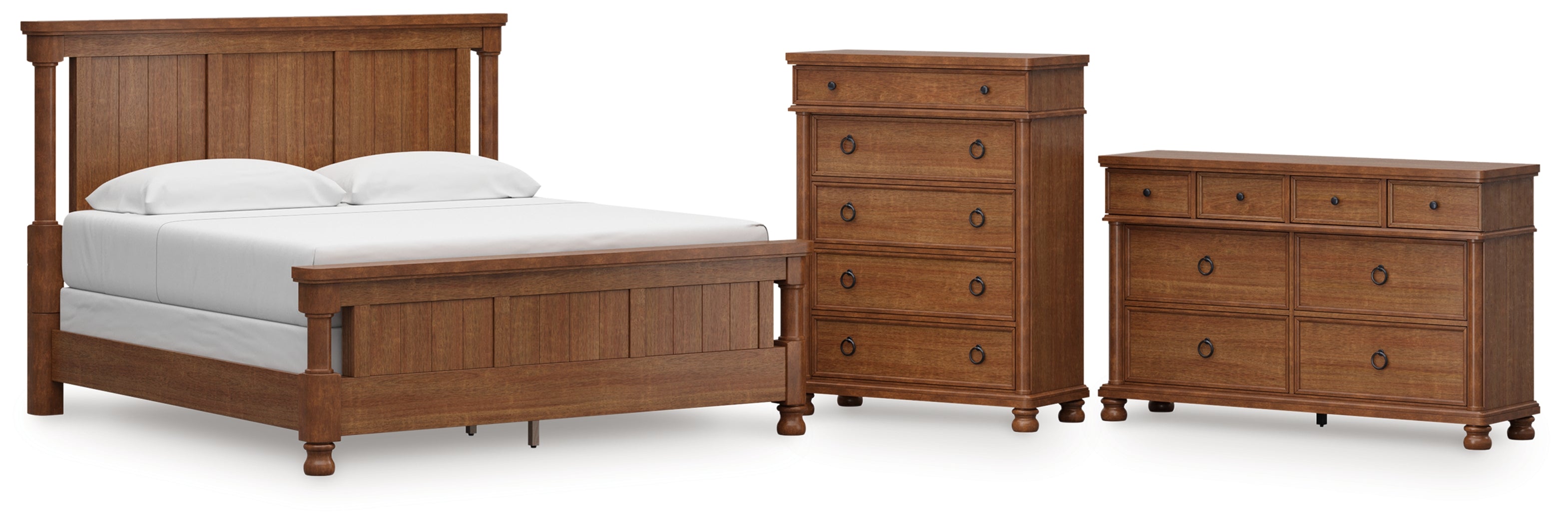 Rowlenstown California King Poster Bed with Dresser and Chest in Brown