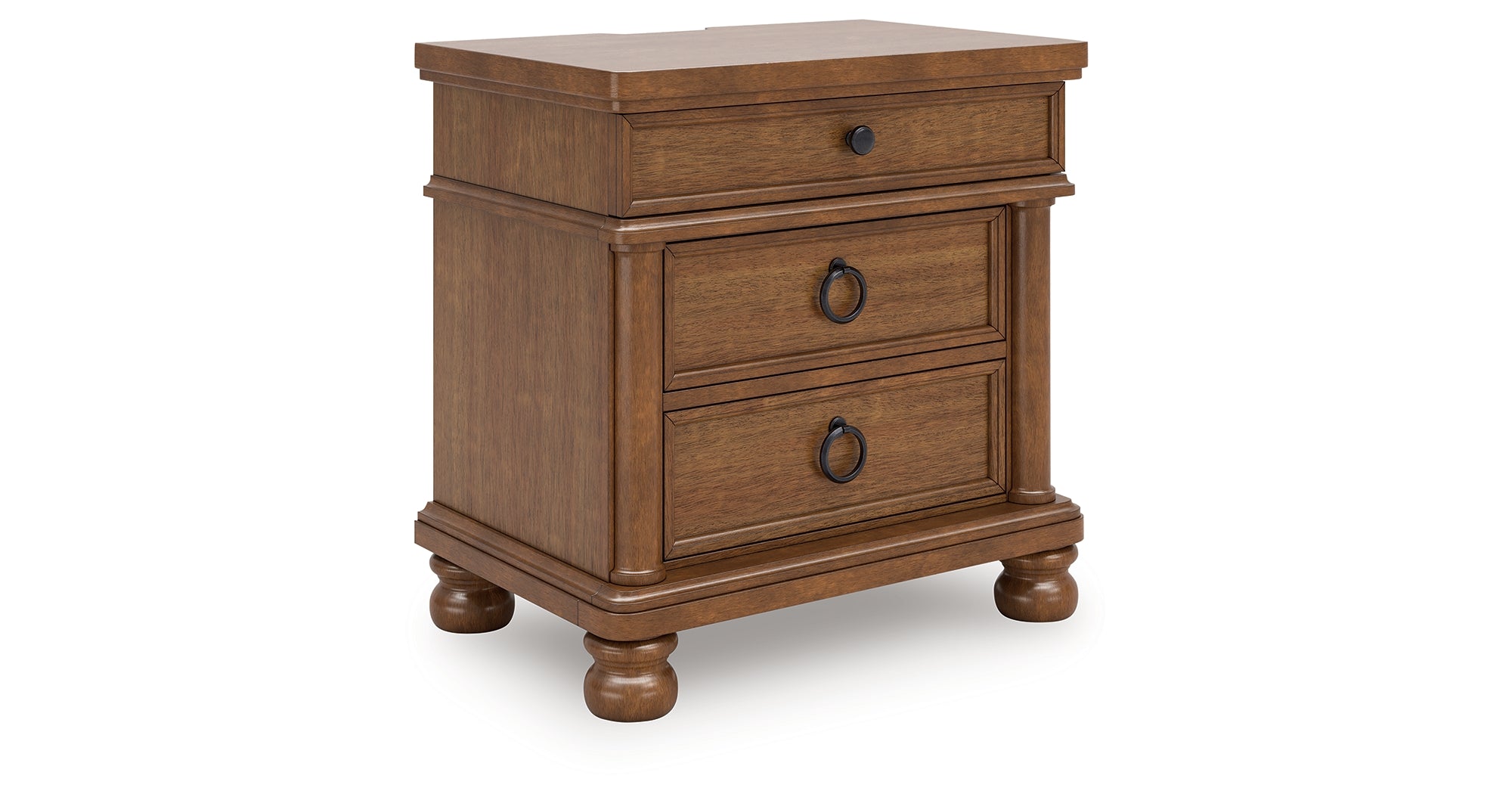Rowlenstown California King Poster Bed with Dresser and Nightstand in Brown
