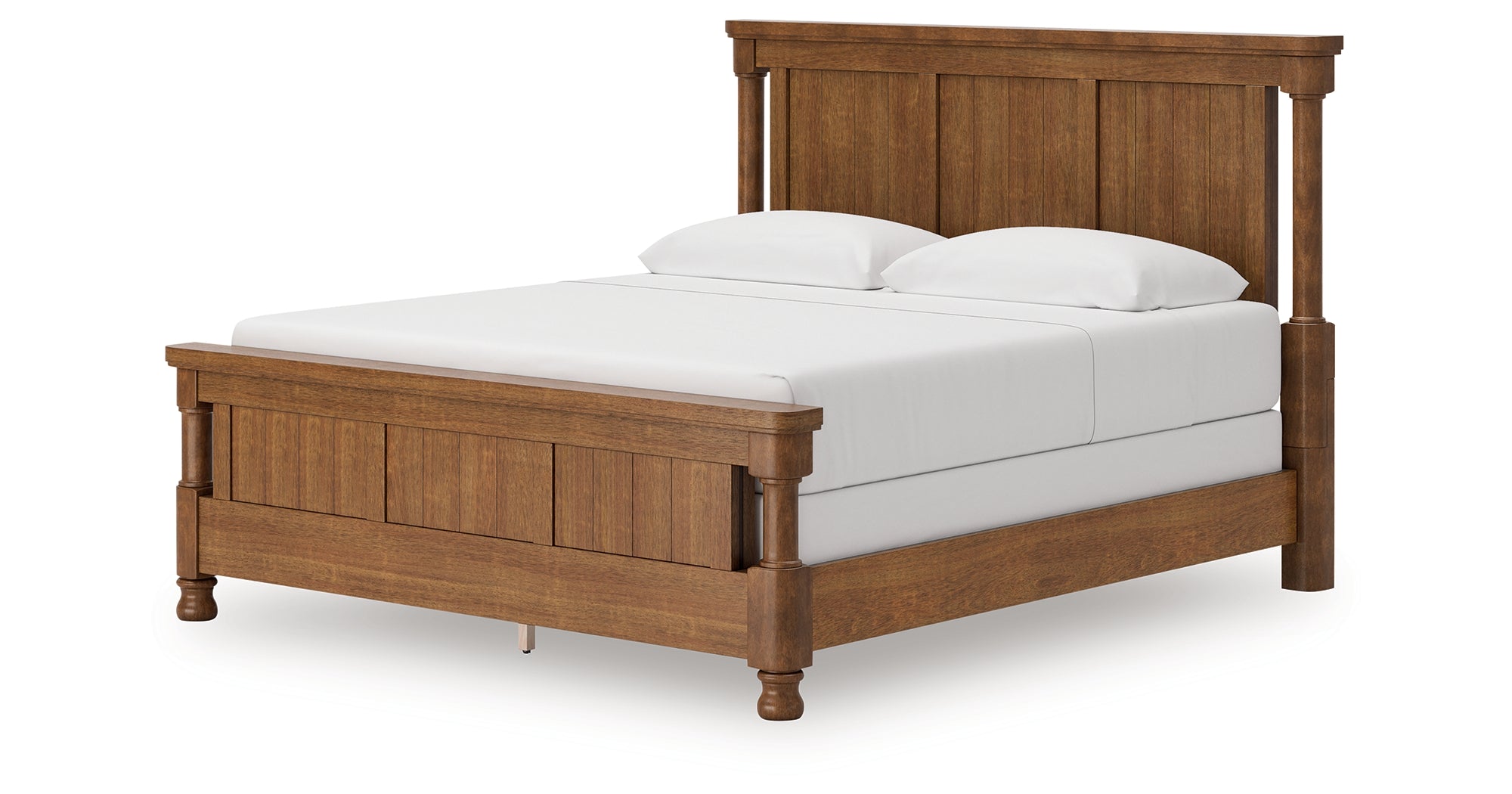 Rowlenstown California King Poster Bed with Mirrored Dresser and Nightstand in Brown