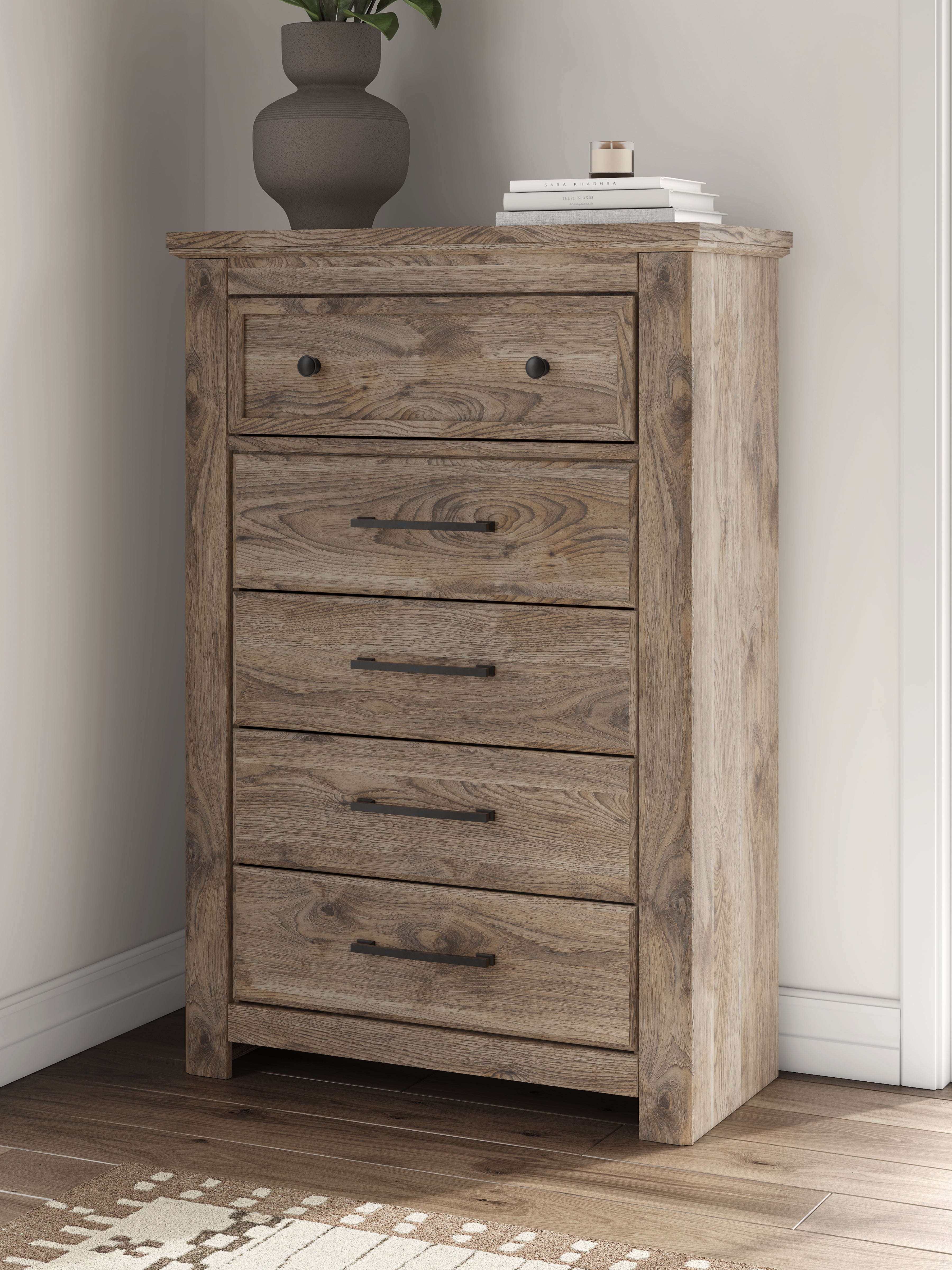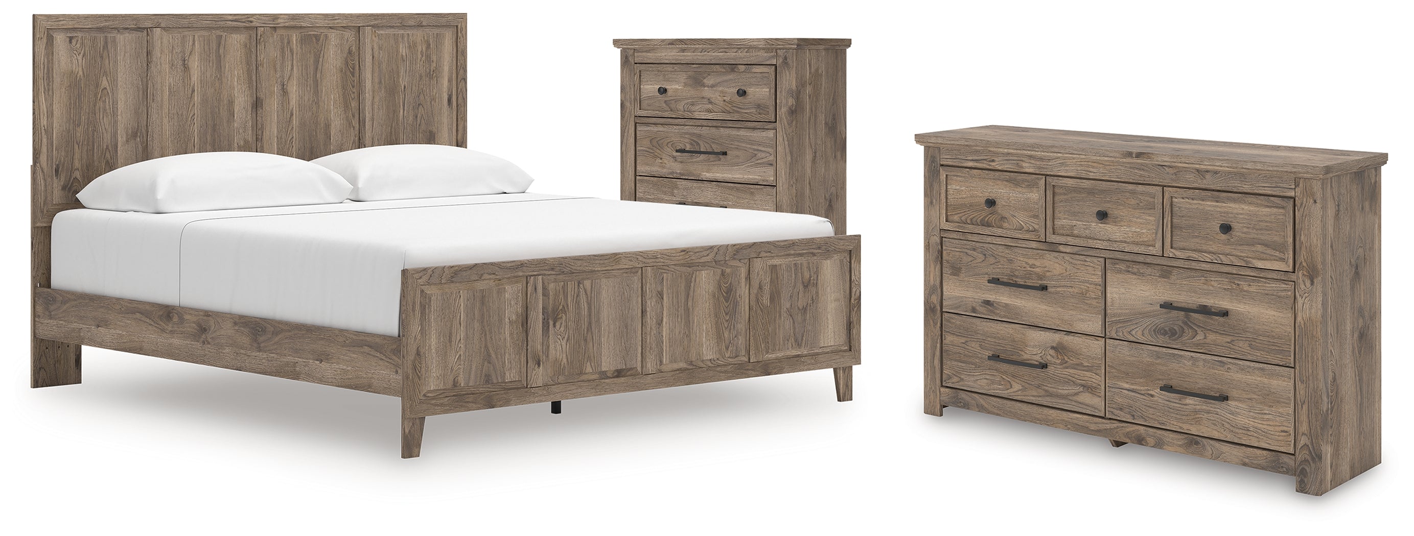 Rusticott King Panel Bed with Dresser and Chest in Brown