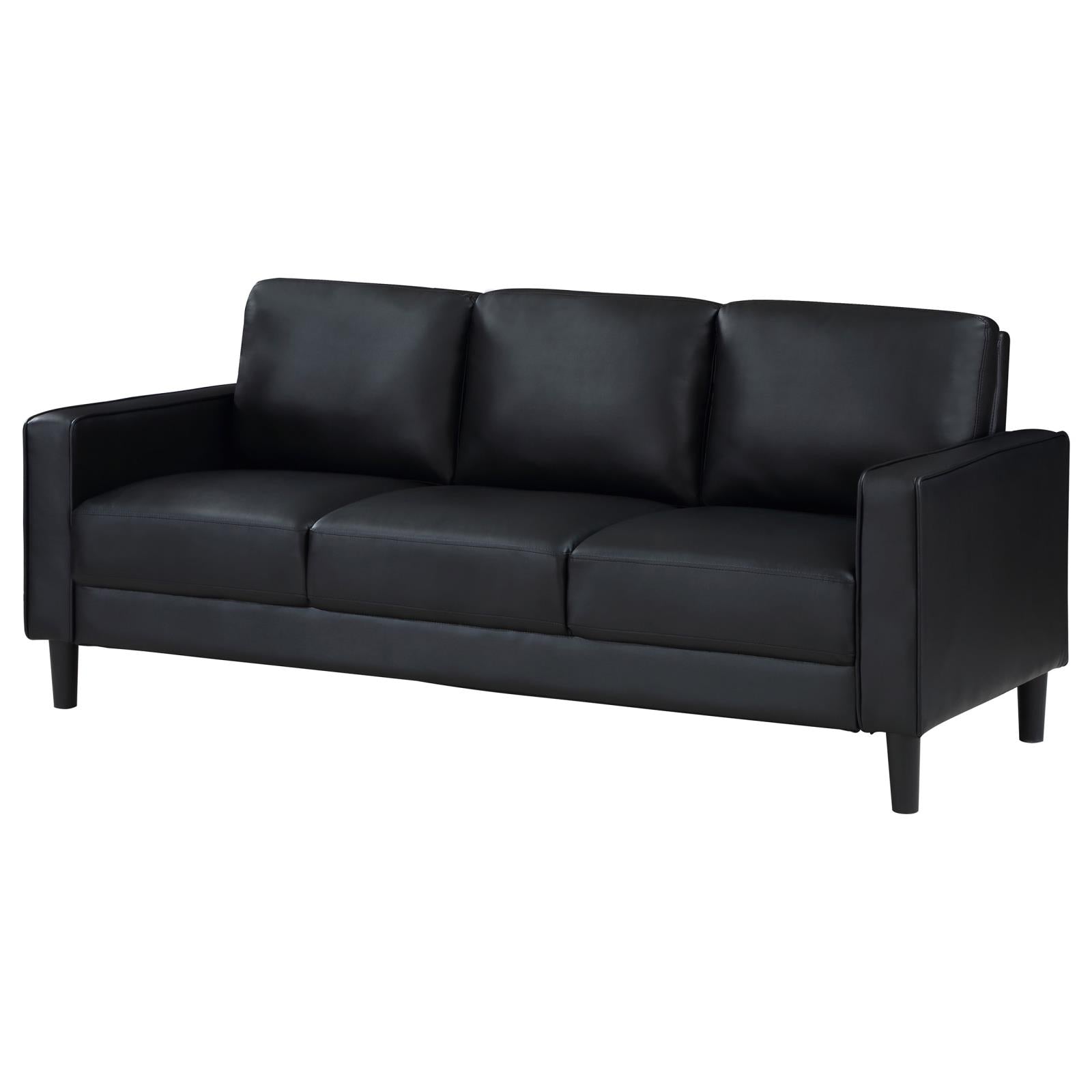 Ruth Black Upholstered Track Arm Faux Leather Sofa