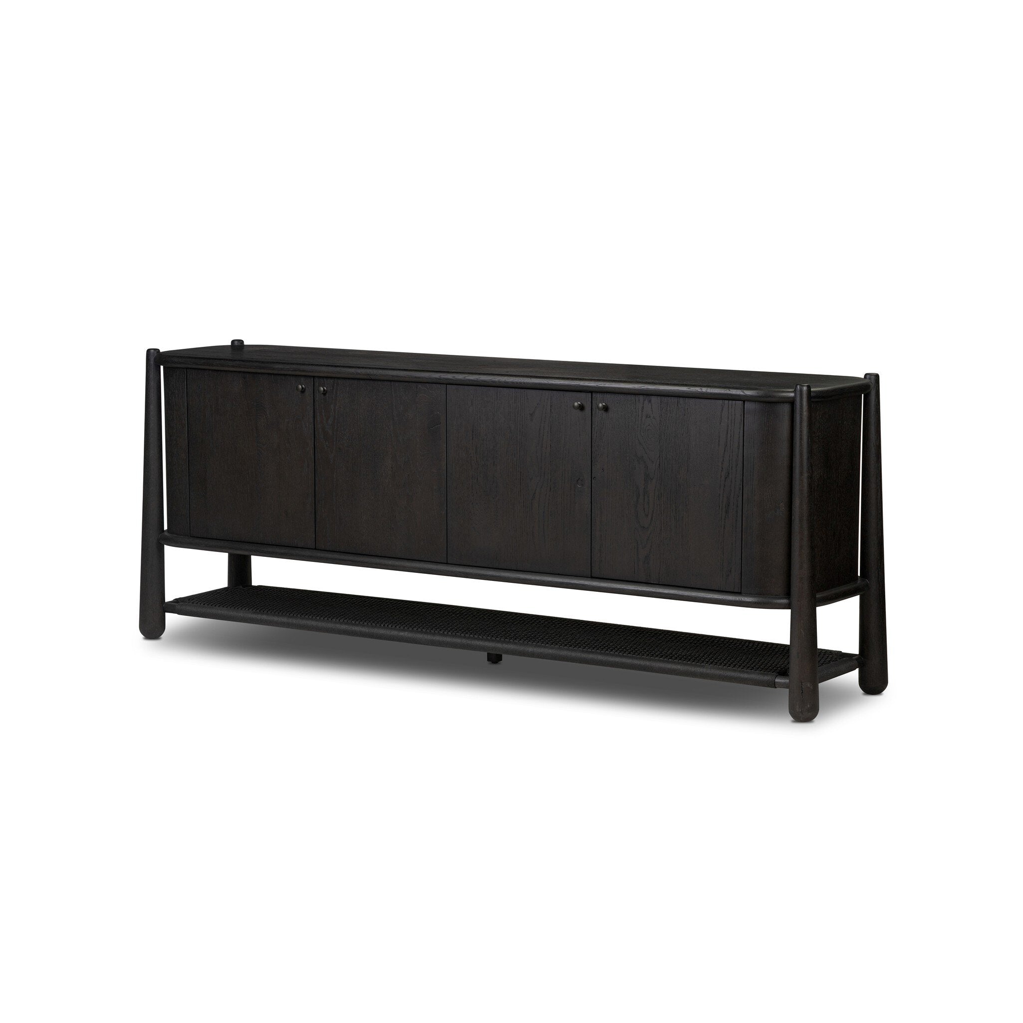 - A study in simple detailing. Tapered legs pull through the top of this smoked black oak sideboard, with the rich knots, cracking and grain adding character. Accented with a paper cord shelf at the base. A design collaboration by Amber Lewis and Four Hands. This item has limited online distribution and may not be sold on websites without prior approval. Visit the FAQ page in our Help Center for more details.