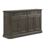 With a style that fits the transitional aesthetic of your home, the Sarasota Collection is sure to become a perfect platform for your mealtime activities. The server’s door fronts catch your eye with their quadrant v-matched veneer pattern while the ash veneer is highlighted with a driftwood gray finish for a wonderfully weathered aesthetic. The server features a three-over-three configuration of behind door and drawer storage allowing for ample space in which to place your tabletop accessories.