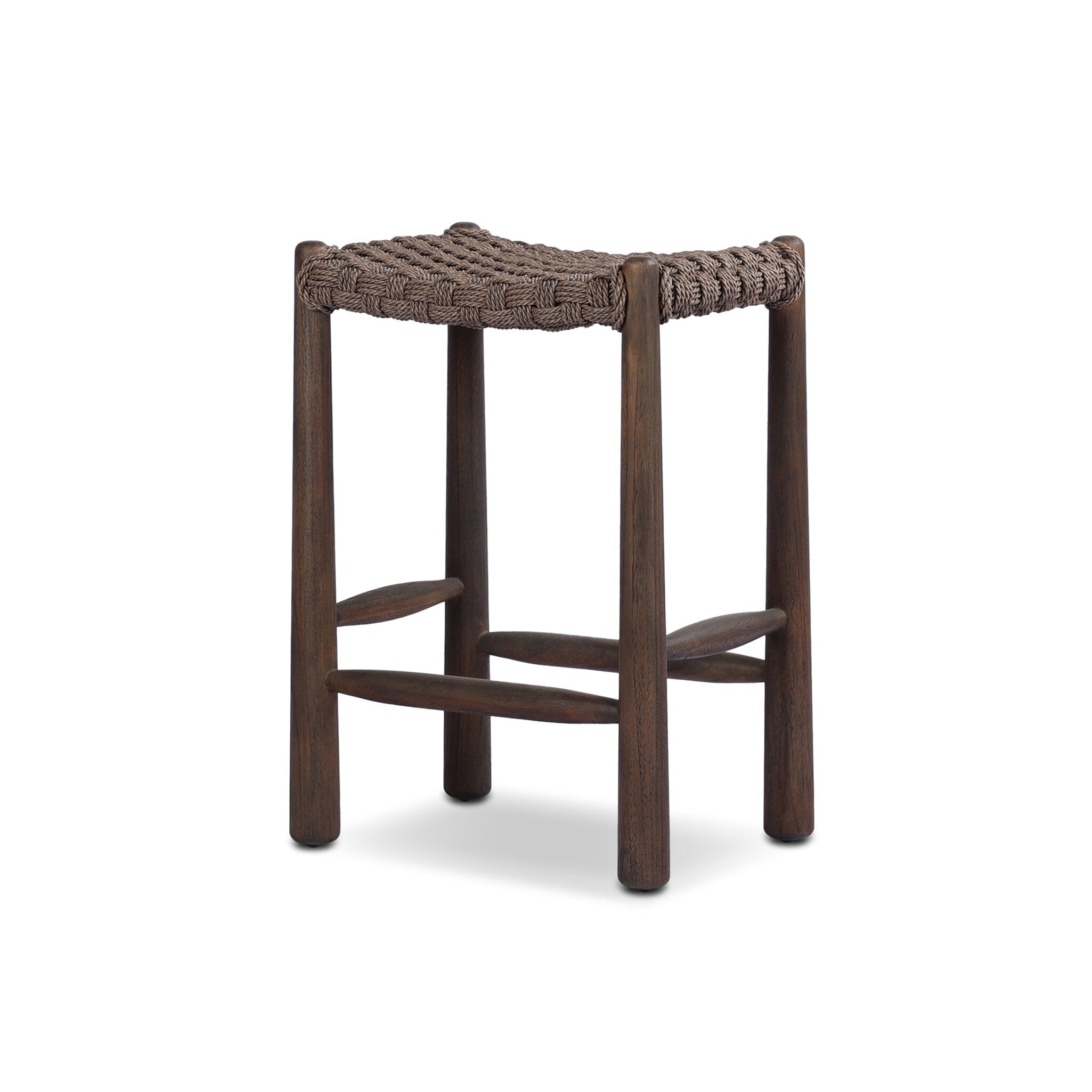 - Exaggerated tapered legs support the saddle-style seat of this outdoor counter stool, finished with a chunky box weave. Cover or store inside during inclement weather and when not in use. A design collaboration by Amber Lewis and Four Hands. This item has limited online distribution and may not be sold on websites without prior approval. Visit the FAQ page in our Help Center for more details.