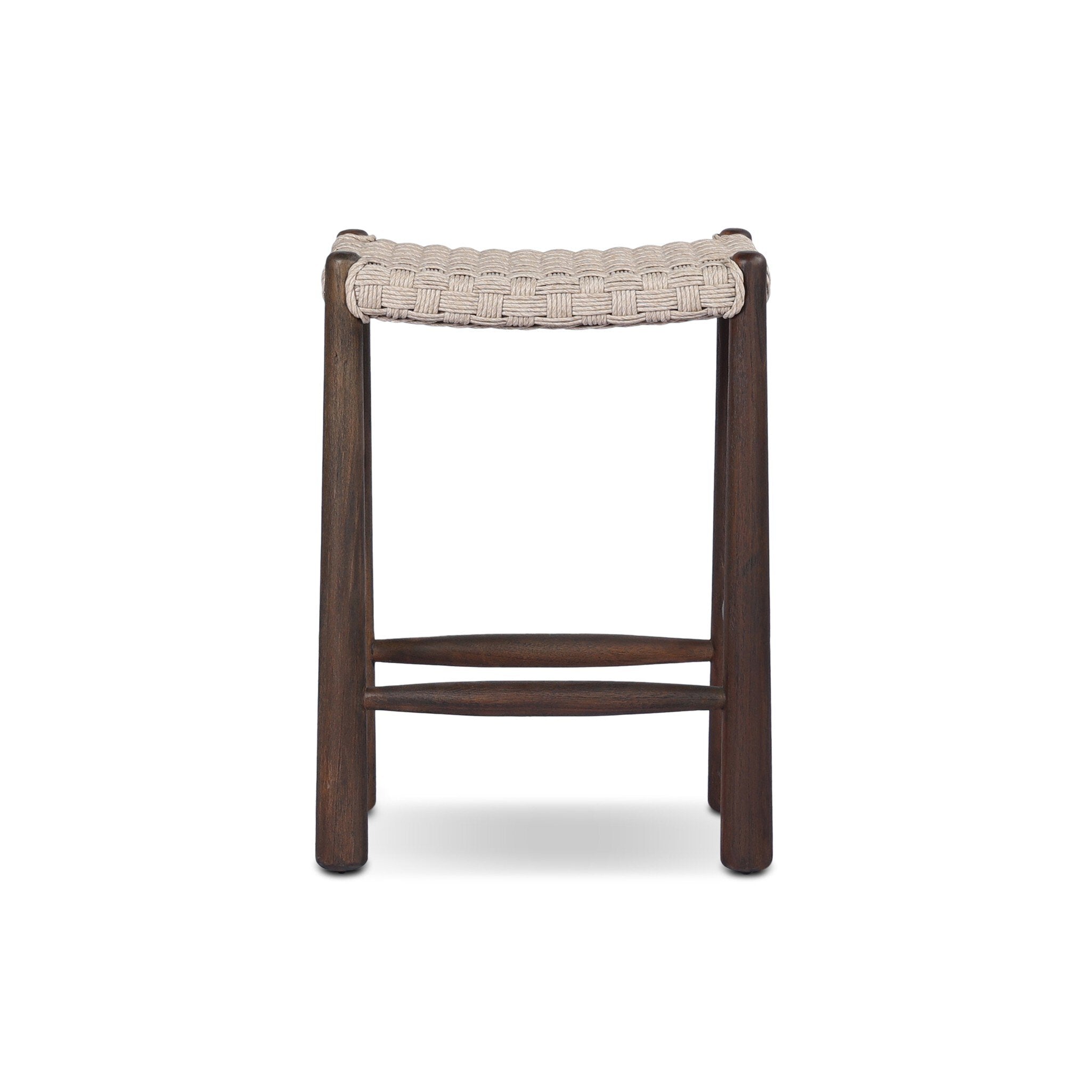 - Exaggerated tapered legs support the saddle-style seat of this outdoor counter stool, finished with a chunky box weave. Cover or store inside during inclement weather and when not in use. A design collaboration by Amber Lewis and Four Hands. This item has limited online distribution and may not be sold on websites without prior approval. Visit the FAQ page in our Help Center for more details.