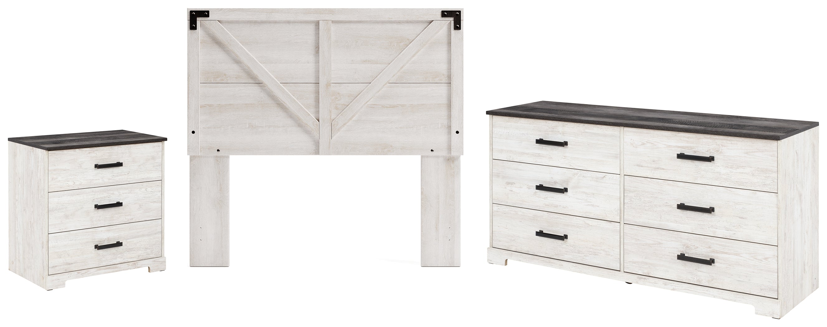 Shawburn Full Panel Headboard Bed with Dresser and 2 Nightstands in Whitewash