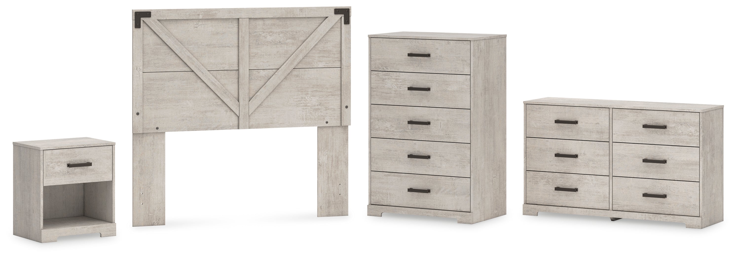 Shawburn Full Panel Headboard with Dresser, Chest and Nightstand in Whitewash