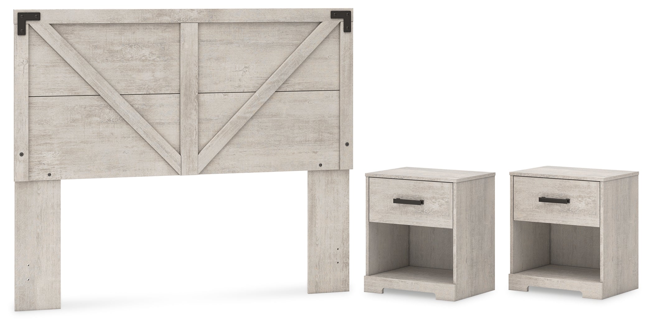 Shawburn Queen Crossbuck Panel Headboard with 2 Nightstands in Whitewash