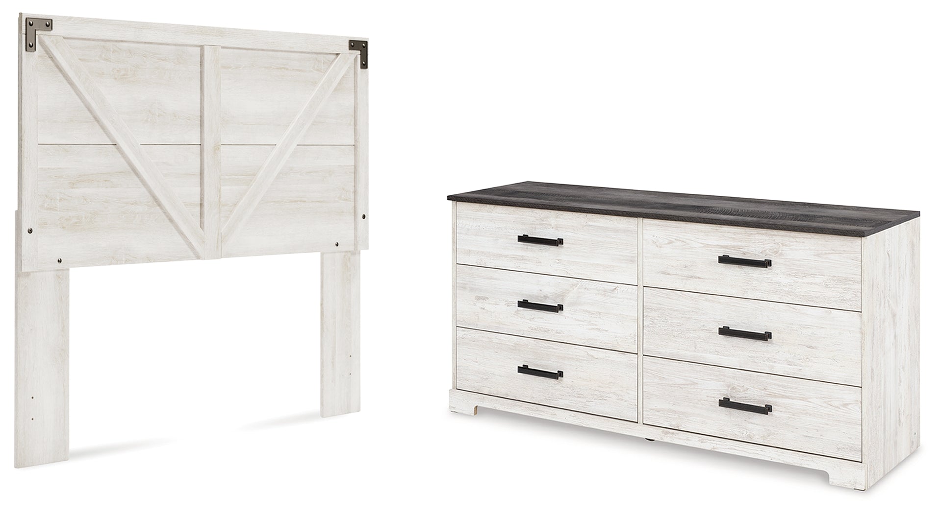 Shawburn Queen Panel Headboard with Dresser in Whitewash