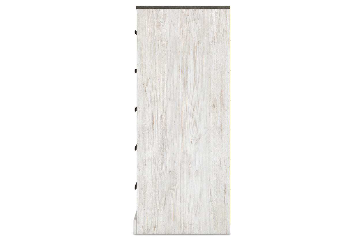 Give provincial a new meaning with the chic look of this chest of drawers. A two-tone finish keeps this piece light and fresh, while the warm pewter-tone hardware adds an industrial touch. The distressed whitewashed body adds a delightfully homespun charm to your space. — Luna Furniture introduces Shawburn Chest of Drawers to enhance the beauty of your living spaces.