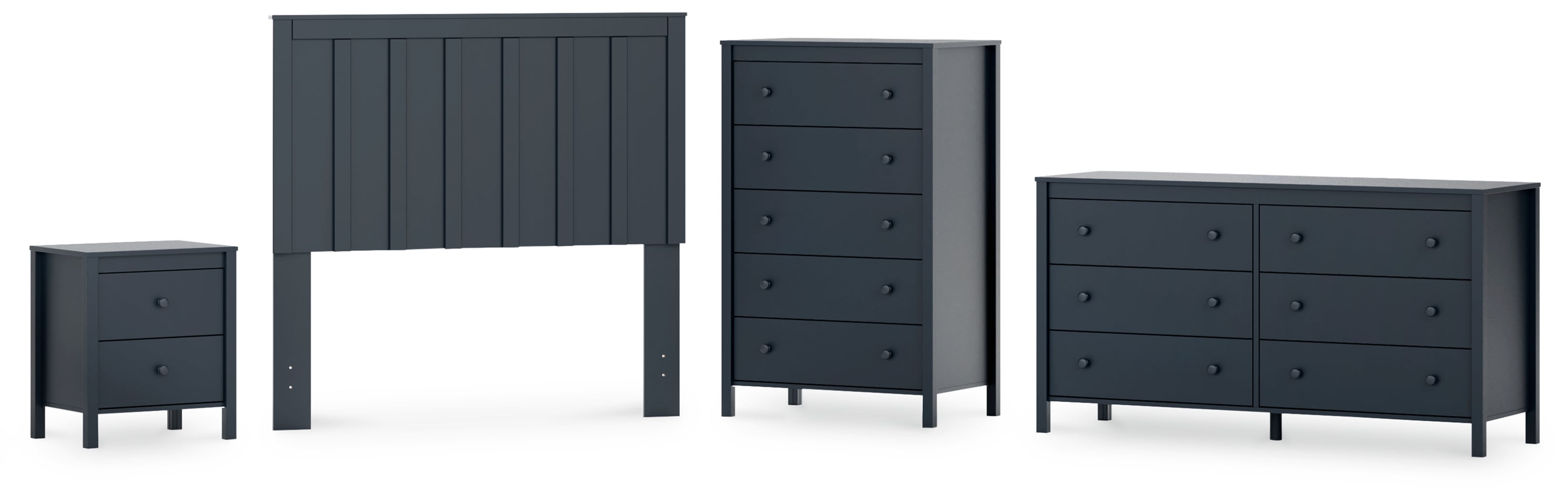 Simmenfort Full Panel Headboard with Dresser, Chest and Nightstand in Navy Blue