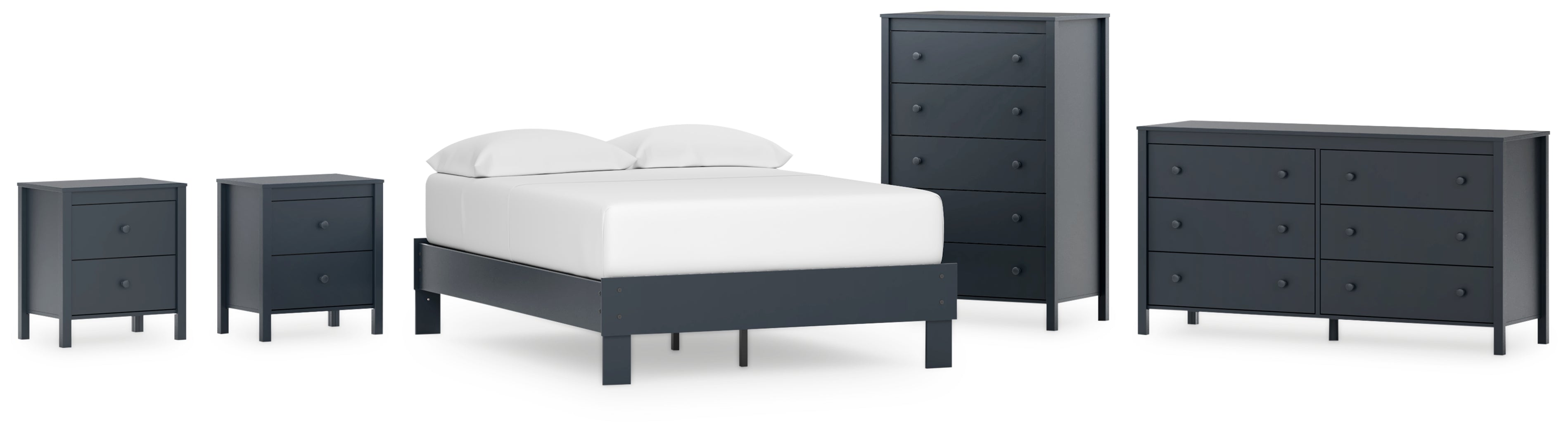 Simmenfort Full Platform Bed with Dresser, Chest and 2 Nightstands in Navy Blue