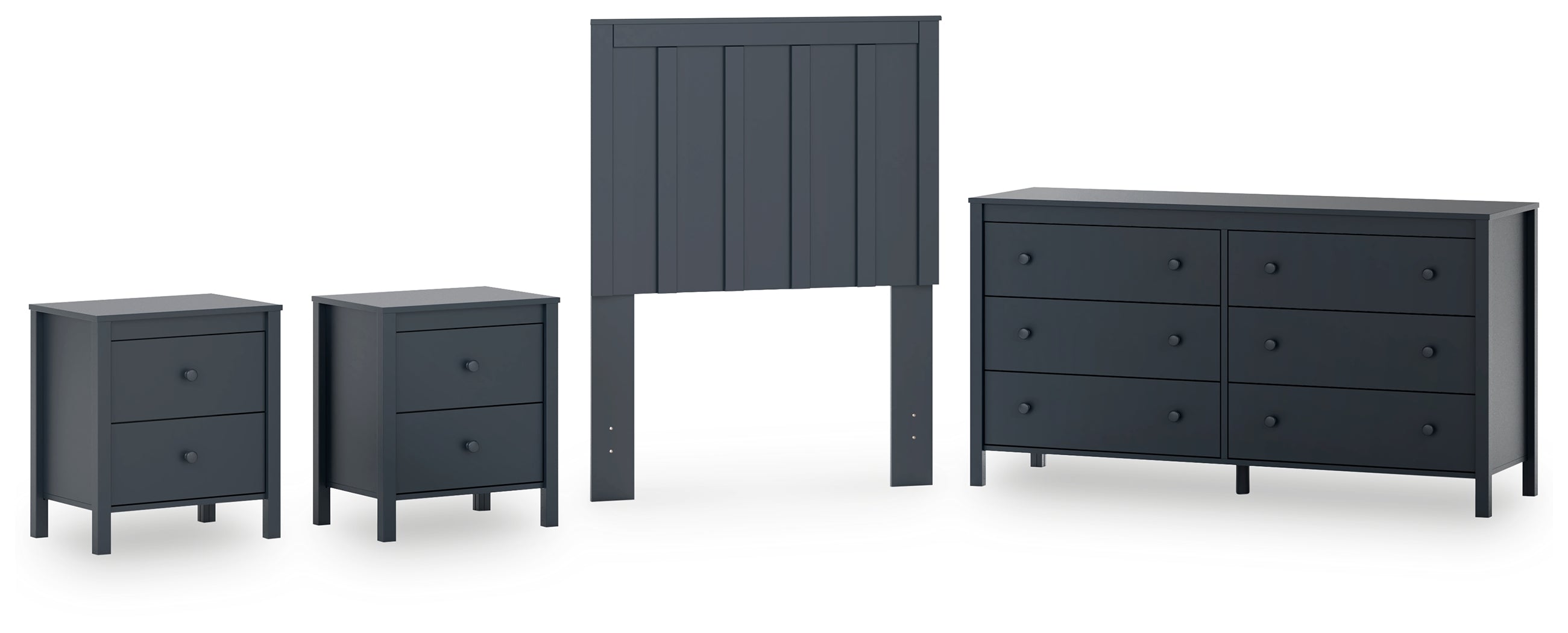 Simmenfort Twin Panel Headboard with Dresser and 2 Nightstands in Navy Blue