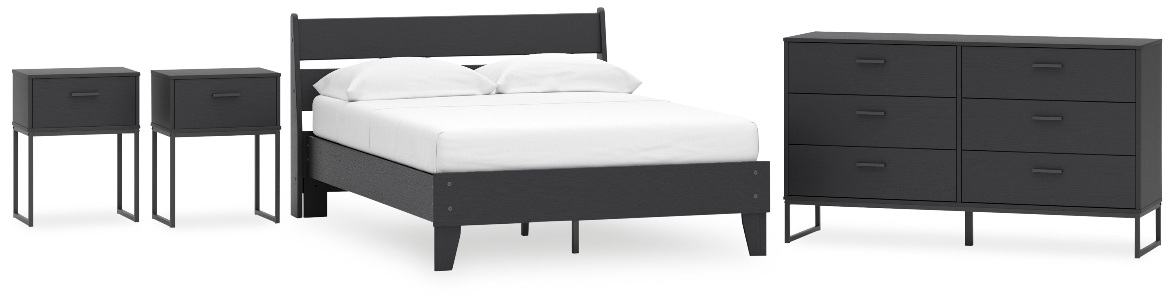 Socalle Full Panel Platform Bed with Dresser and 2 Nightstands in Black