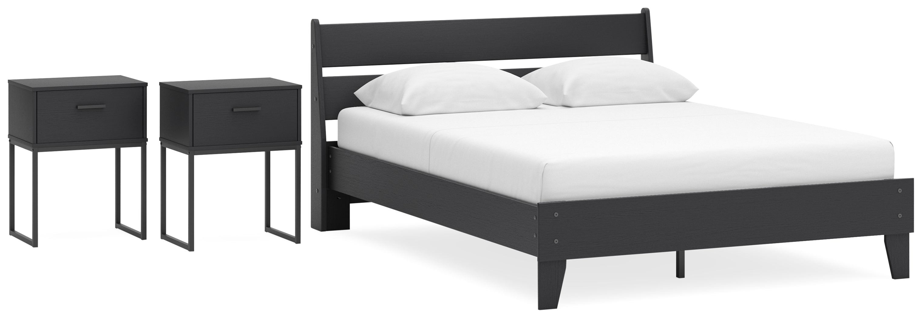 Socalle Queen Panel Platform Bed with 2 Nightstands in Black