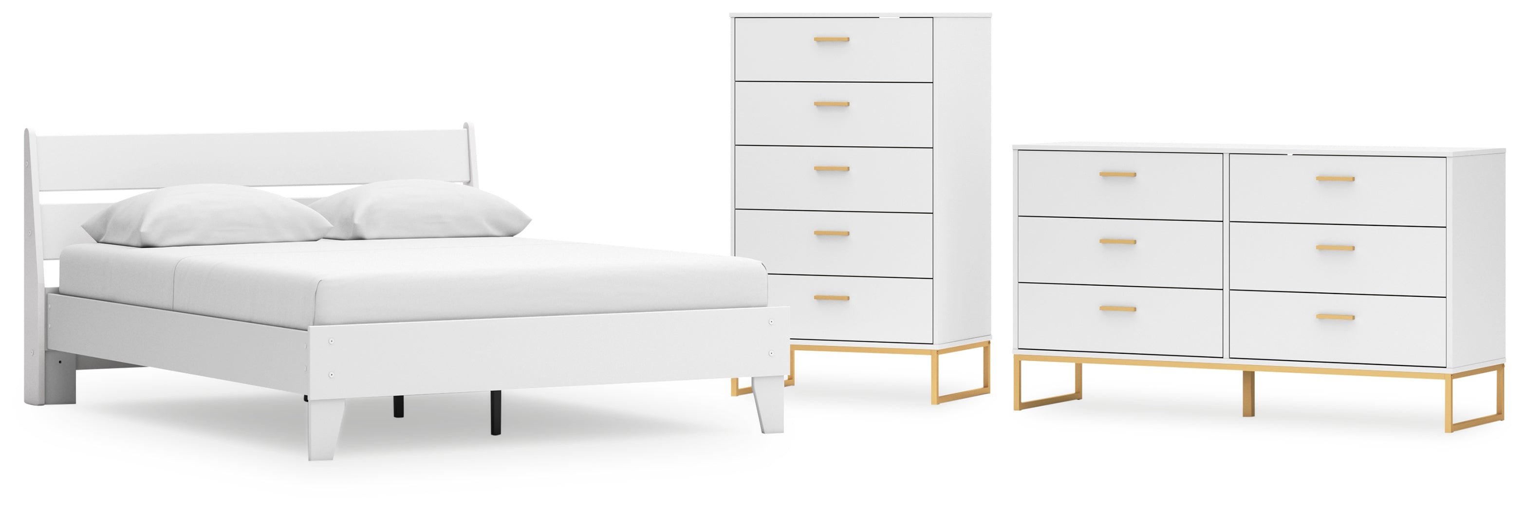 Light and bright, this bedroom package is inspired by chic design. A matte white finish and goldtone accents offer an elegant touch to this so-cool set. It beautifully blends the hues of natural living with the edginess of your modern lifestyle.